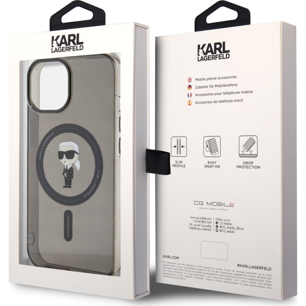 Ochranný kryt na iPhone 15 - Karl Lagerfeld, IML Ikonik MagSafe Black