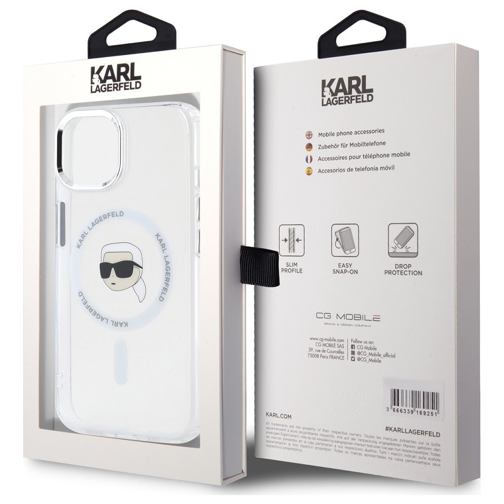 Ochranný kryt na iPhone 15 - Karl Lagerfeld, IML Karl Head MagSafe Transparent