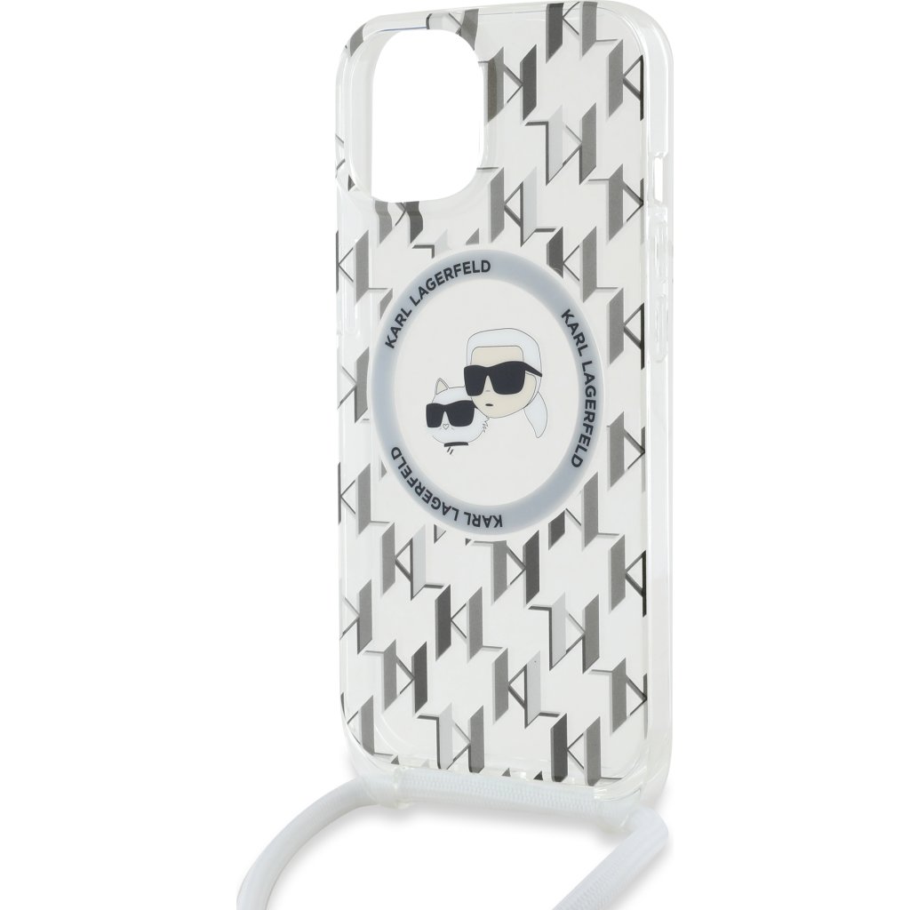 Ochranný kryt na iPhone 15 - Karl Lagerfeld, IML Monogram Crossbody K&CH Heads Magsafe Transparent
