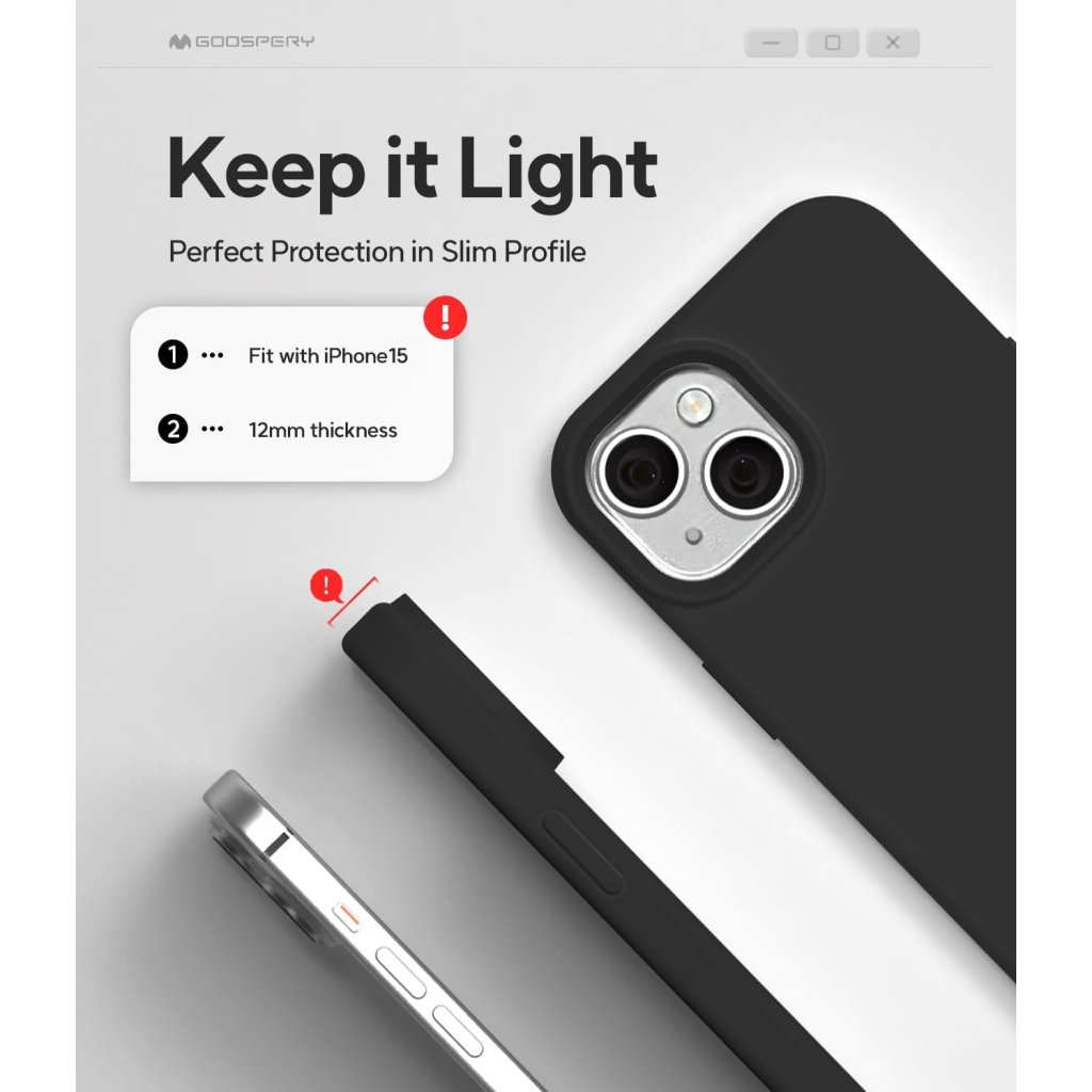 Ochranný kryt pro iPhone 15 Mercury Silicone perfektně ochrání před škrábanci a menšími pády a zároveň poskytuje pohodlné ovládání zařízení.