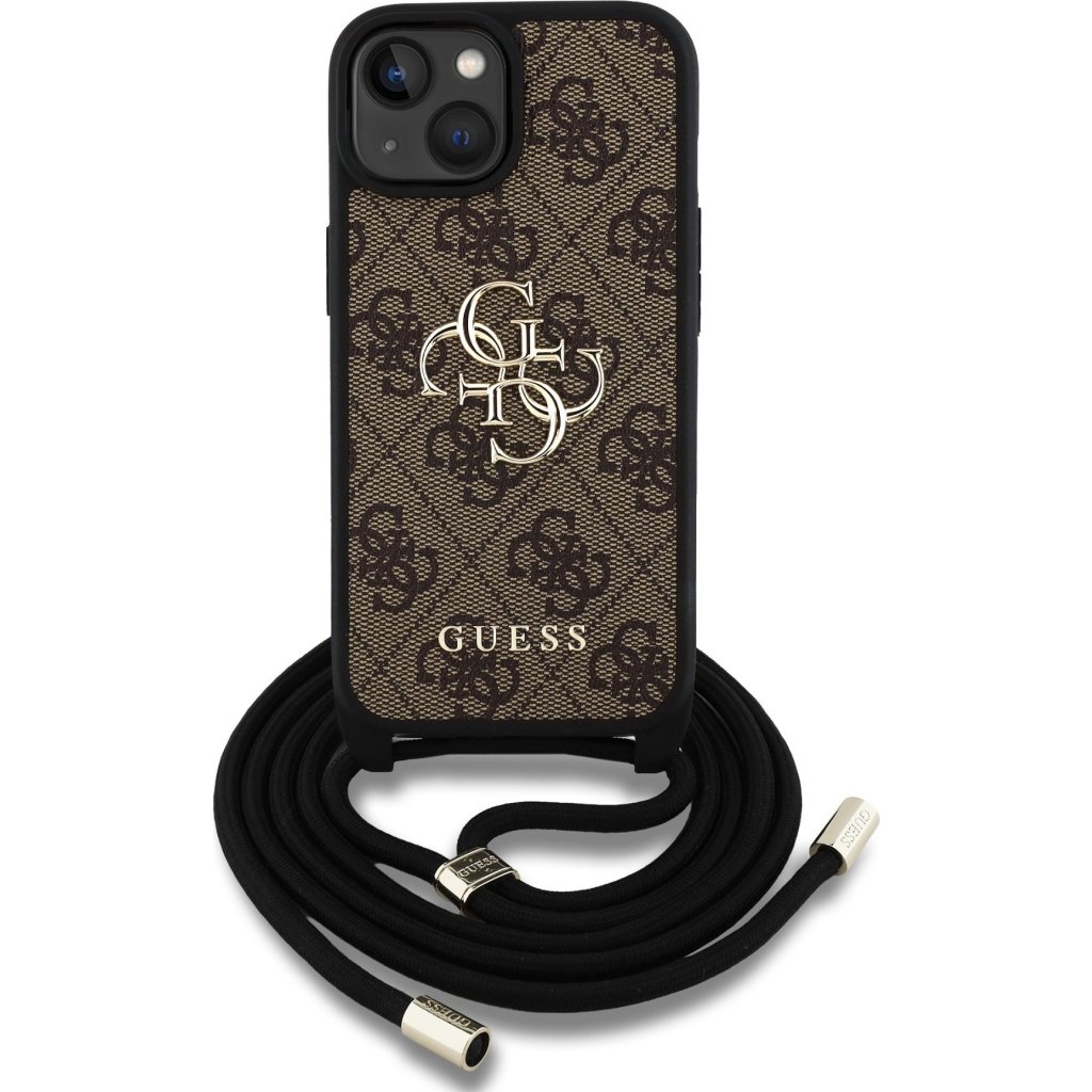 Ochranný kryt s crossbody popruhem na iPhone 15 - Guess, 4G PU Metal Logo Brown