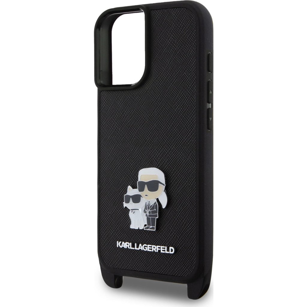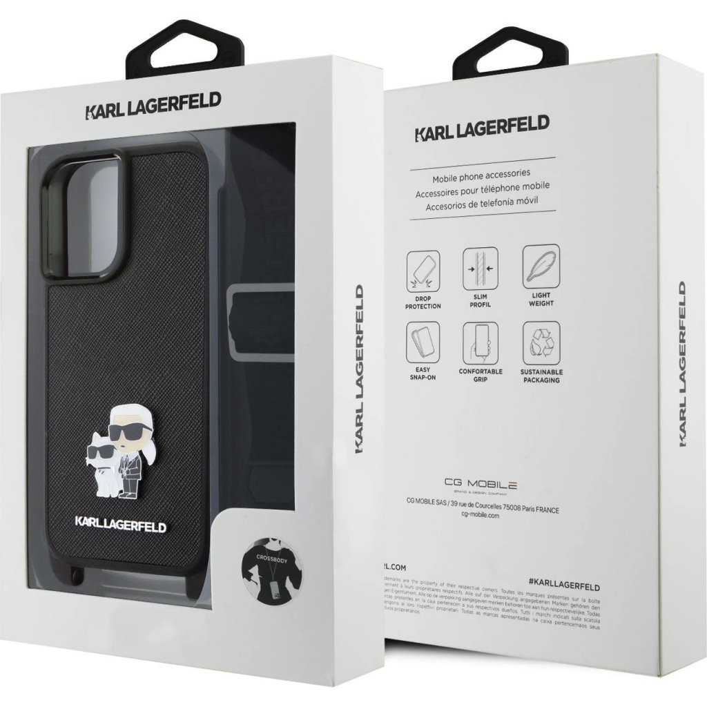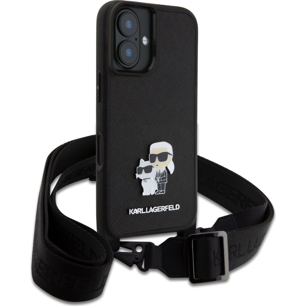 Ochranný kryt na iPhone 16 PLUS - Karl Lagerfeld, Saffiano Crossbody Karl and Choupette Black