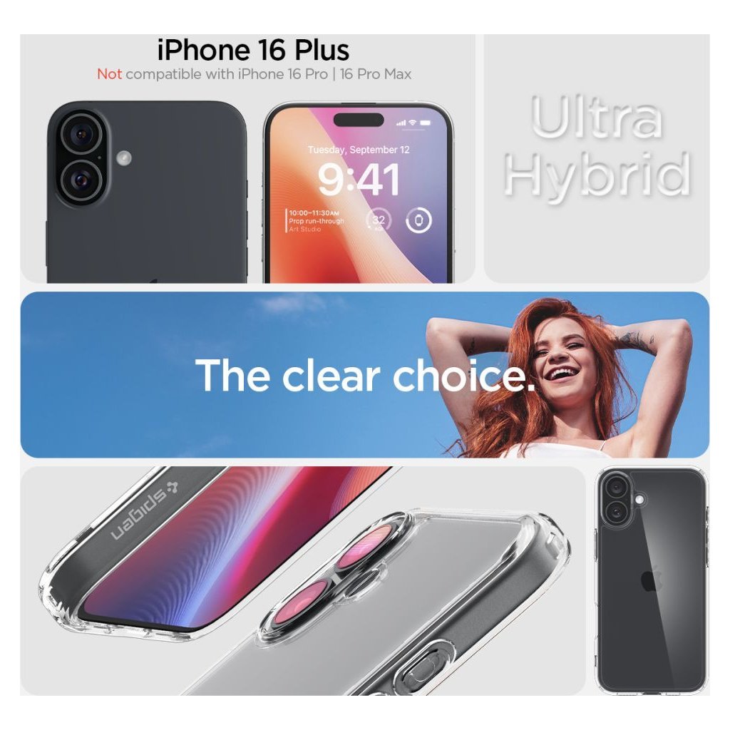 Ochranný kryt na iPhone 16 PLUS - Spigen, Ultra Hybrid Crystal Clear
