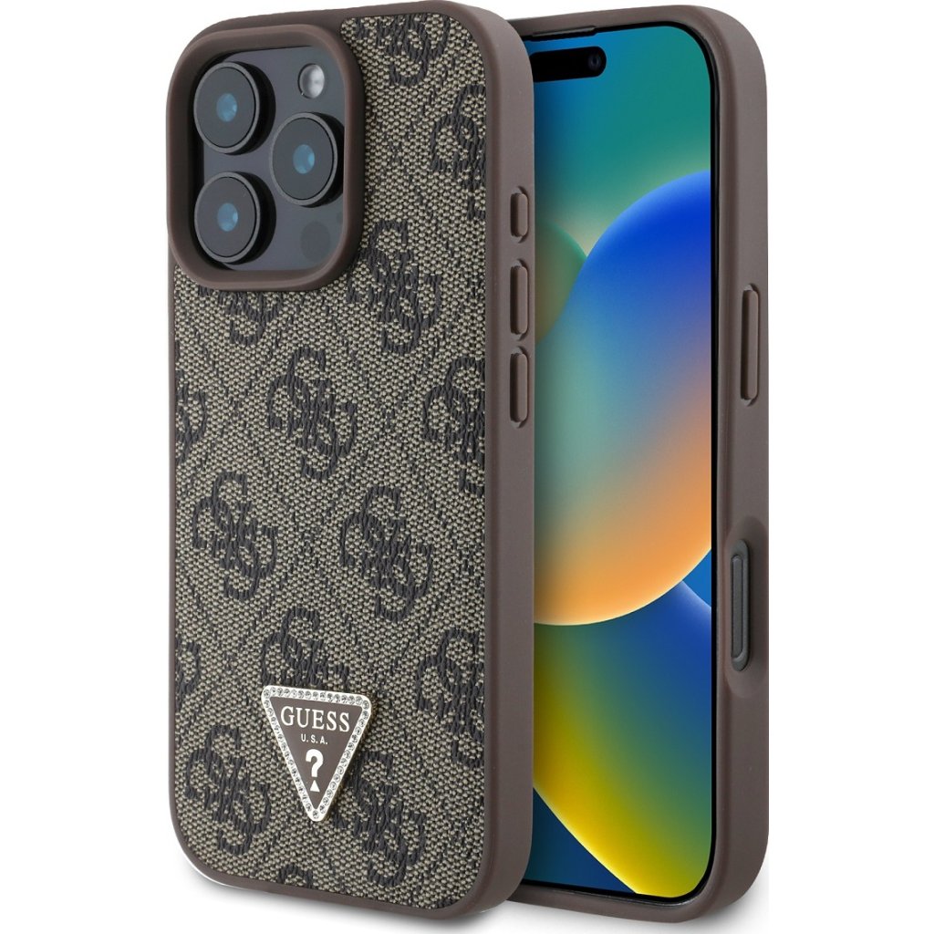 Ochranný kryt na iPhone 16 Pro MAX - Guess, 4G Strass Triangle Brown