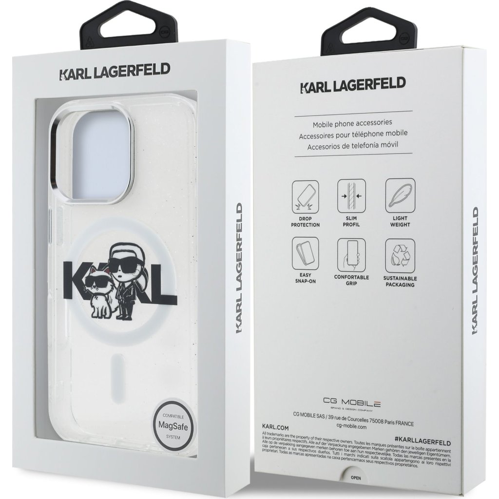 Ochranný kryt na iPhone 16 Pro MAX - Karl Lagerfeld, IML Glitter Sketch MagSafe Transparent