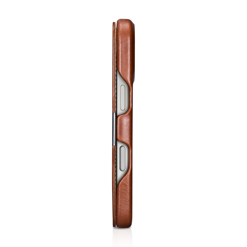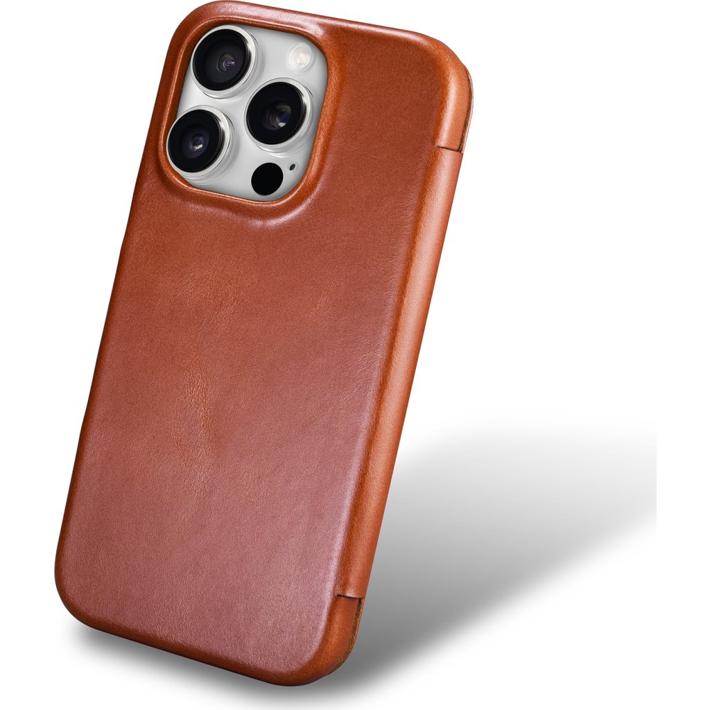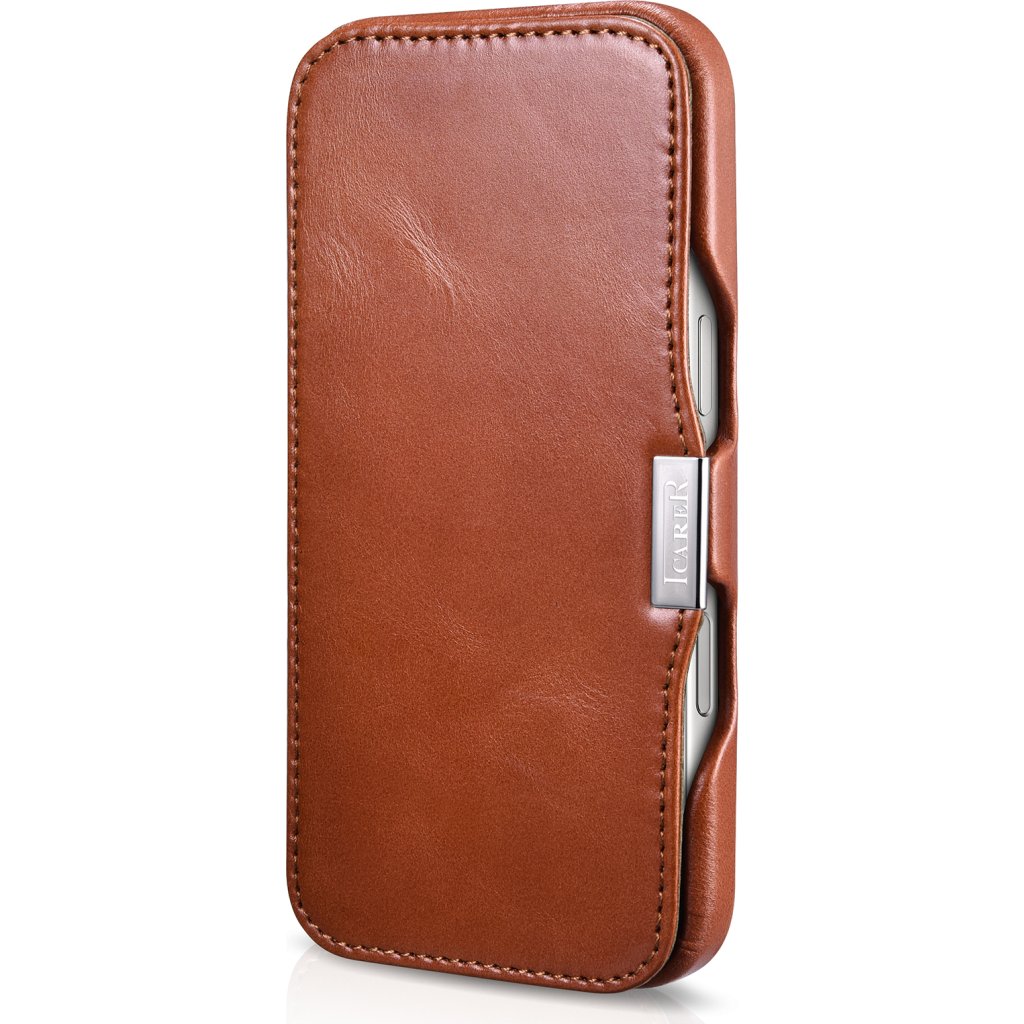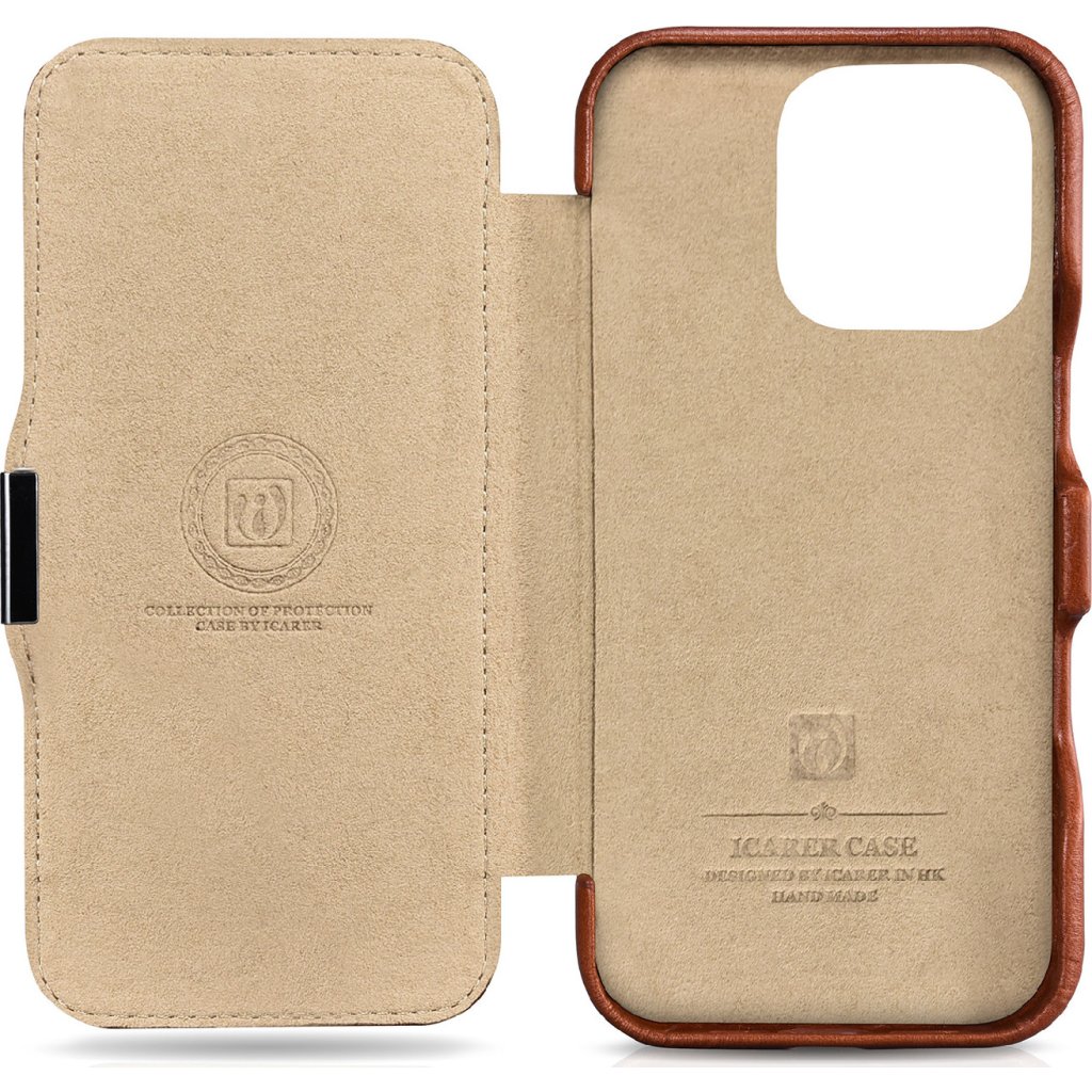 Knížkové pouzdro na iPhone 16 Pro - iCarer, Oil Wax Real Leather MagSafe Brown