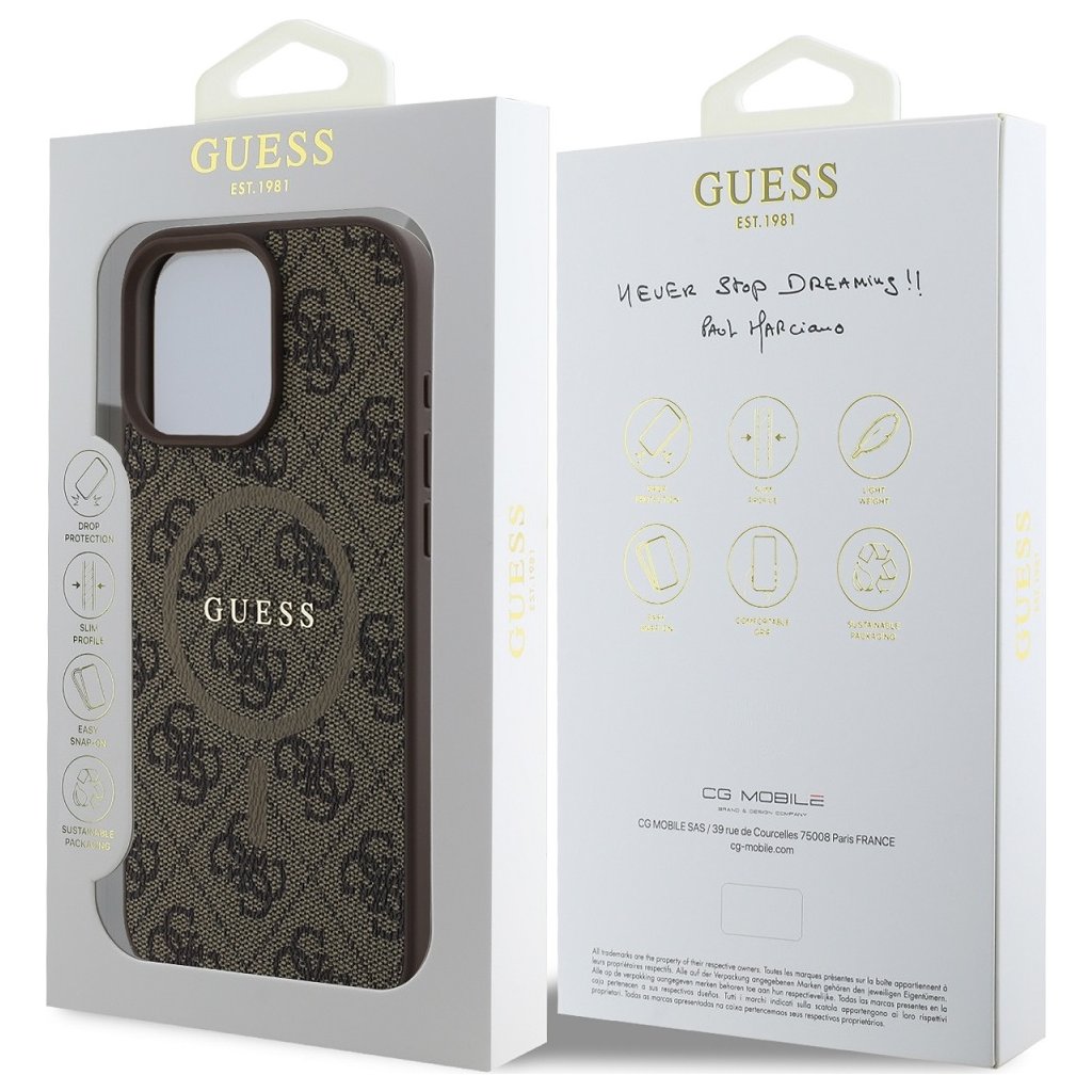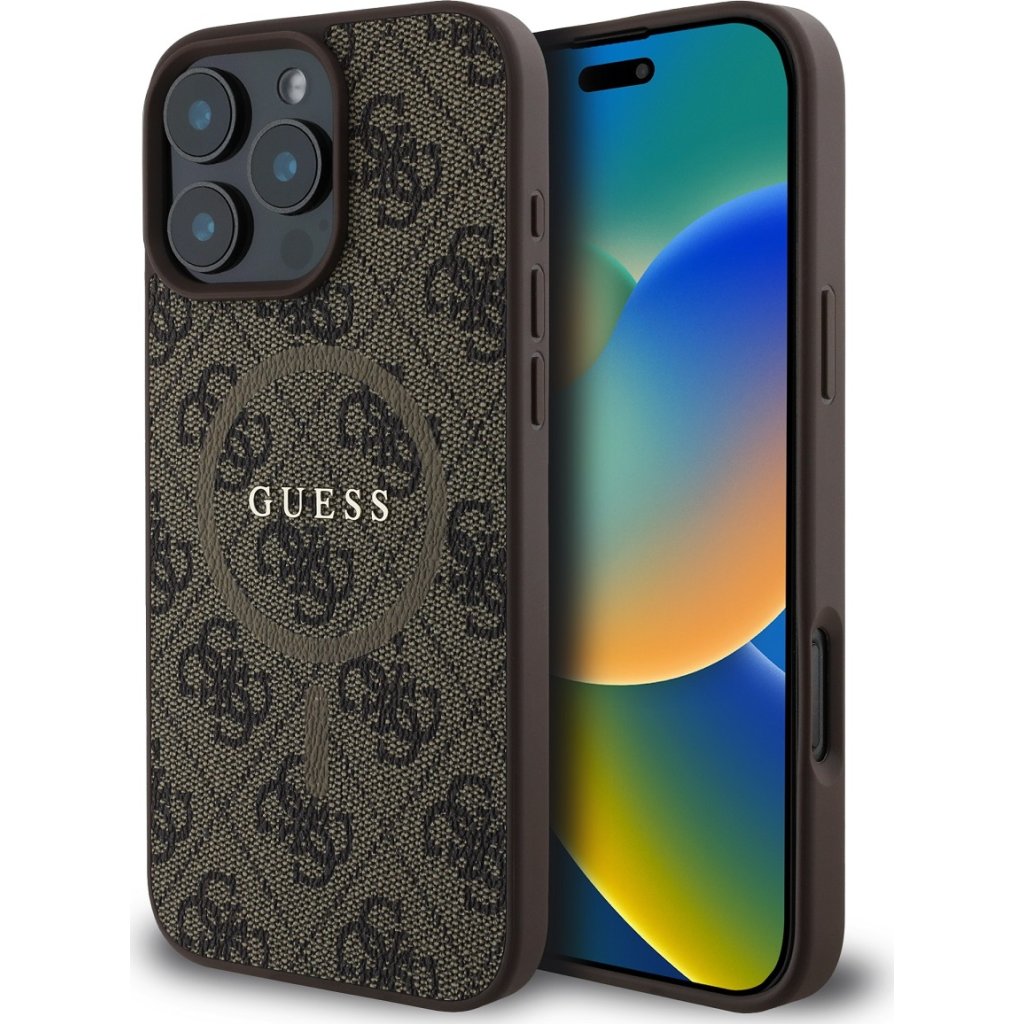 Ochranný kryt na iPhone 16 Pro - Guess, 4G Colored Ring MagSafe Brown