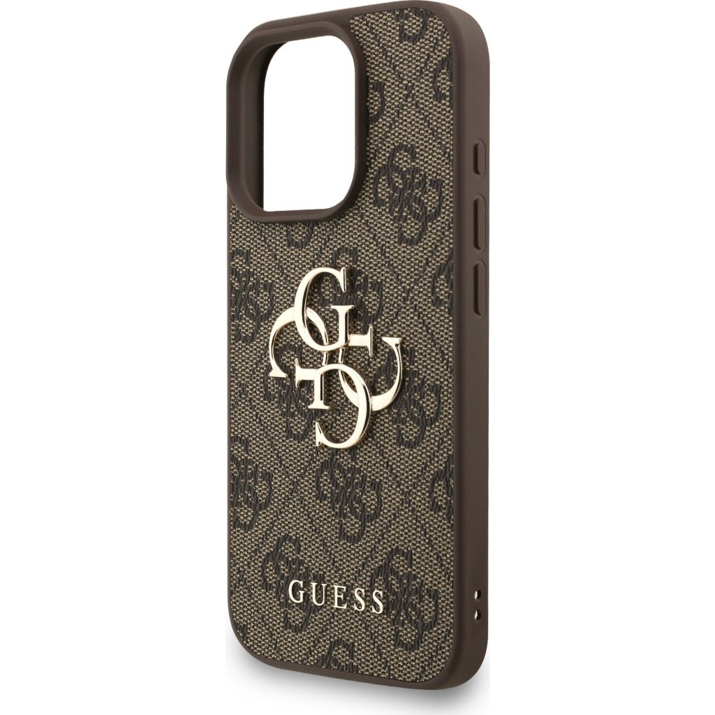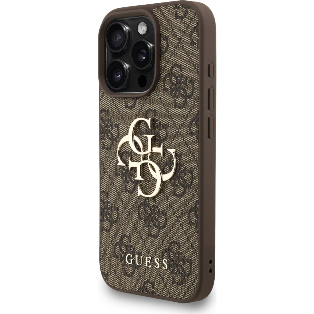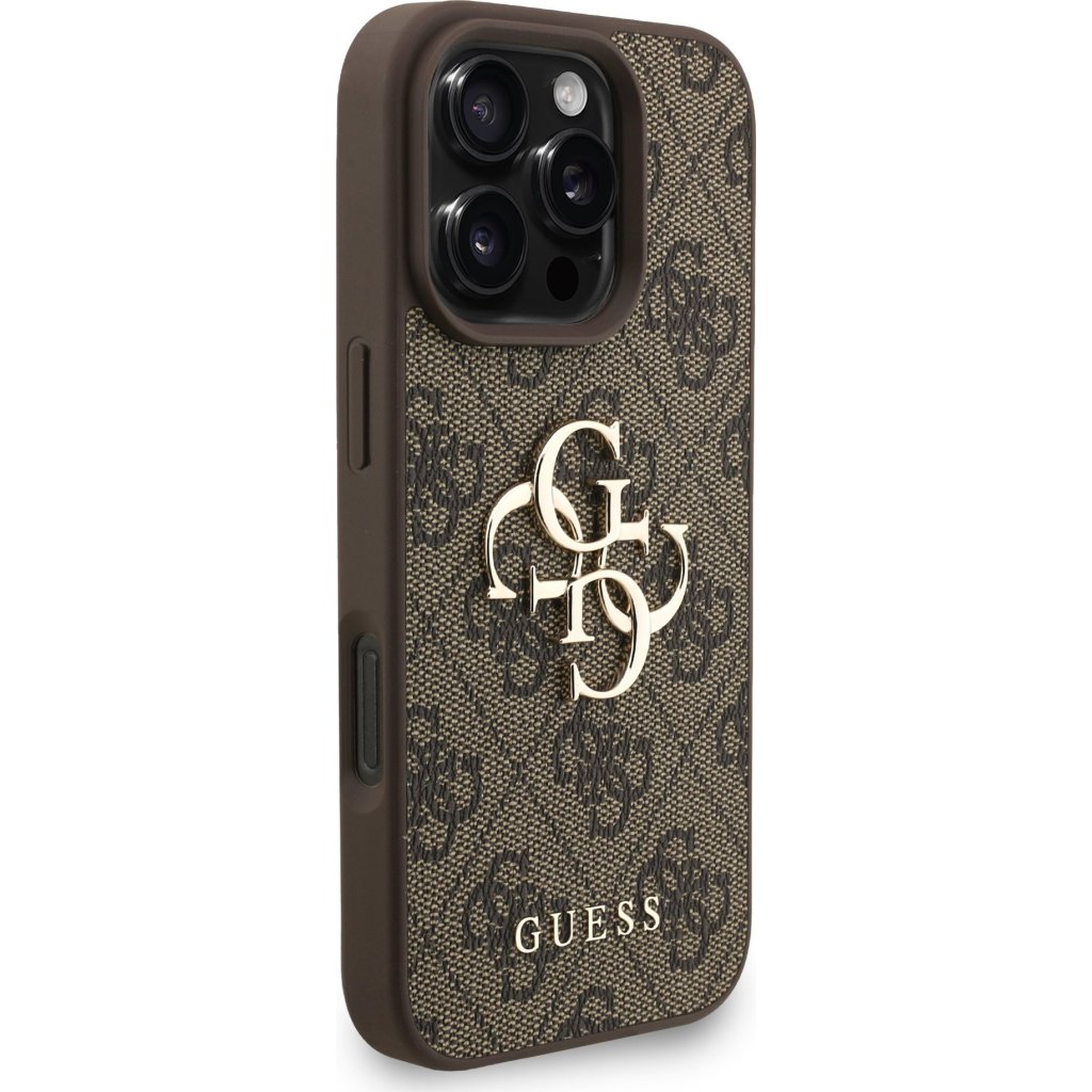 Ochranný kryt na iPhone 16 Pro - Guess, 4G Metal Logo Strap Brown