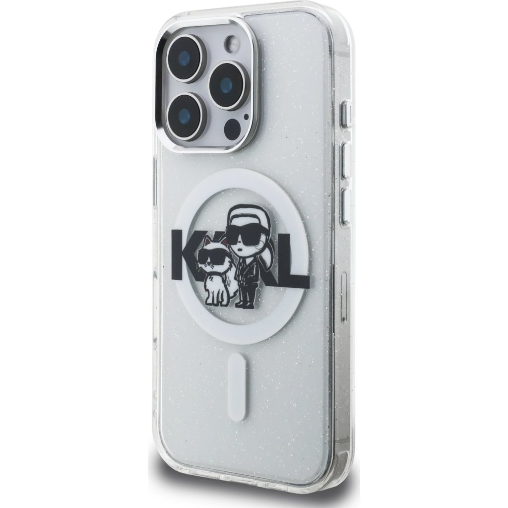 Karl Lagerfeld IML Glitter Karl and Choupette Sketch MagSafe zadní kryt je dokonalý doplněk pro váš telefon i outfit, který kombinuje funkčnost a styl v jednom.