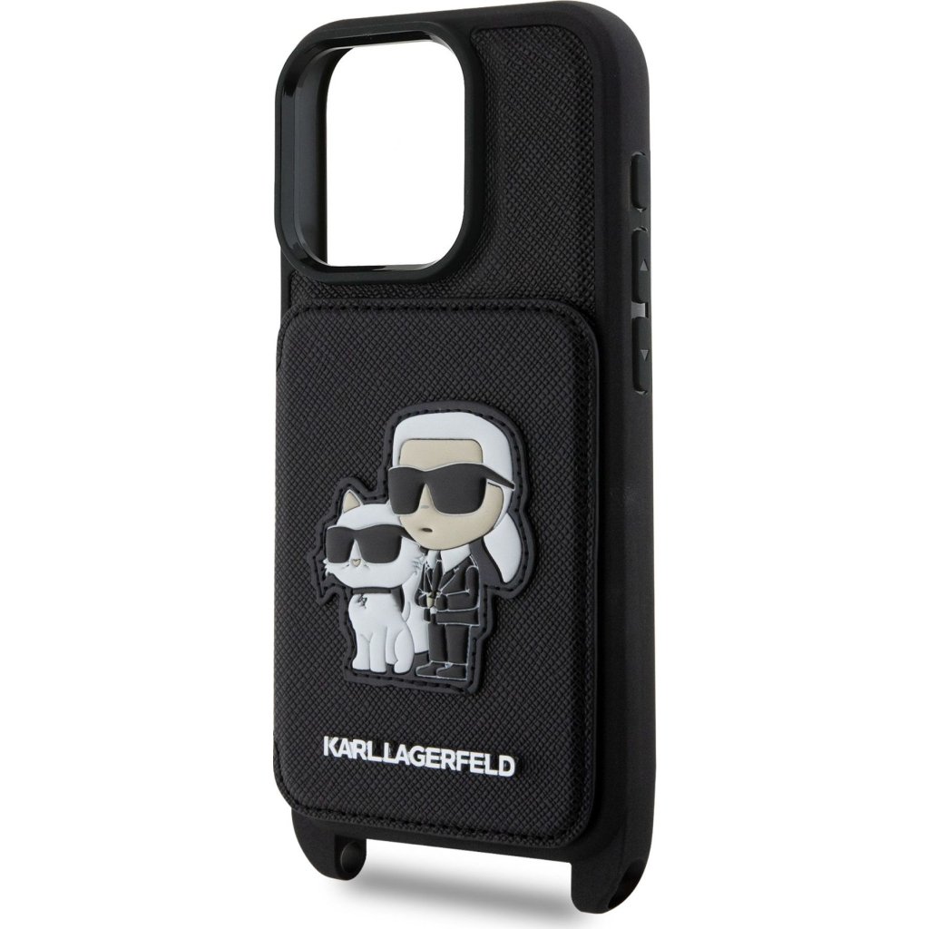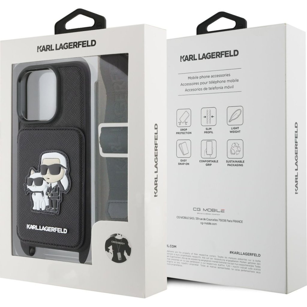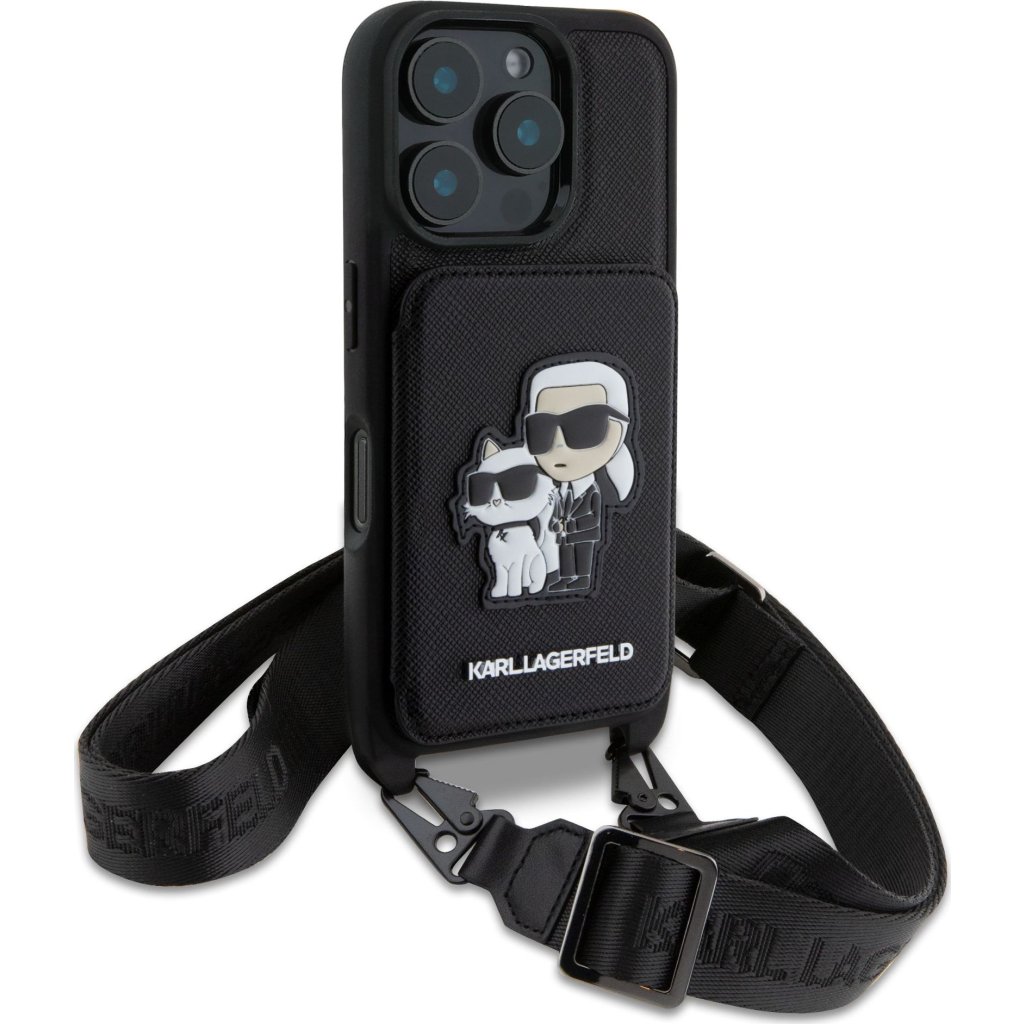 Ochranný kryt na iPhone 16 Pro - Karl Lagerfeld, Saffiano Crossbody Karl and Choupette Black