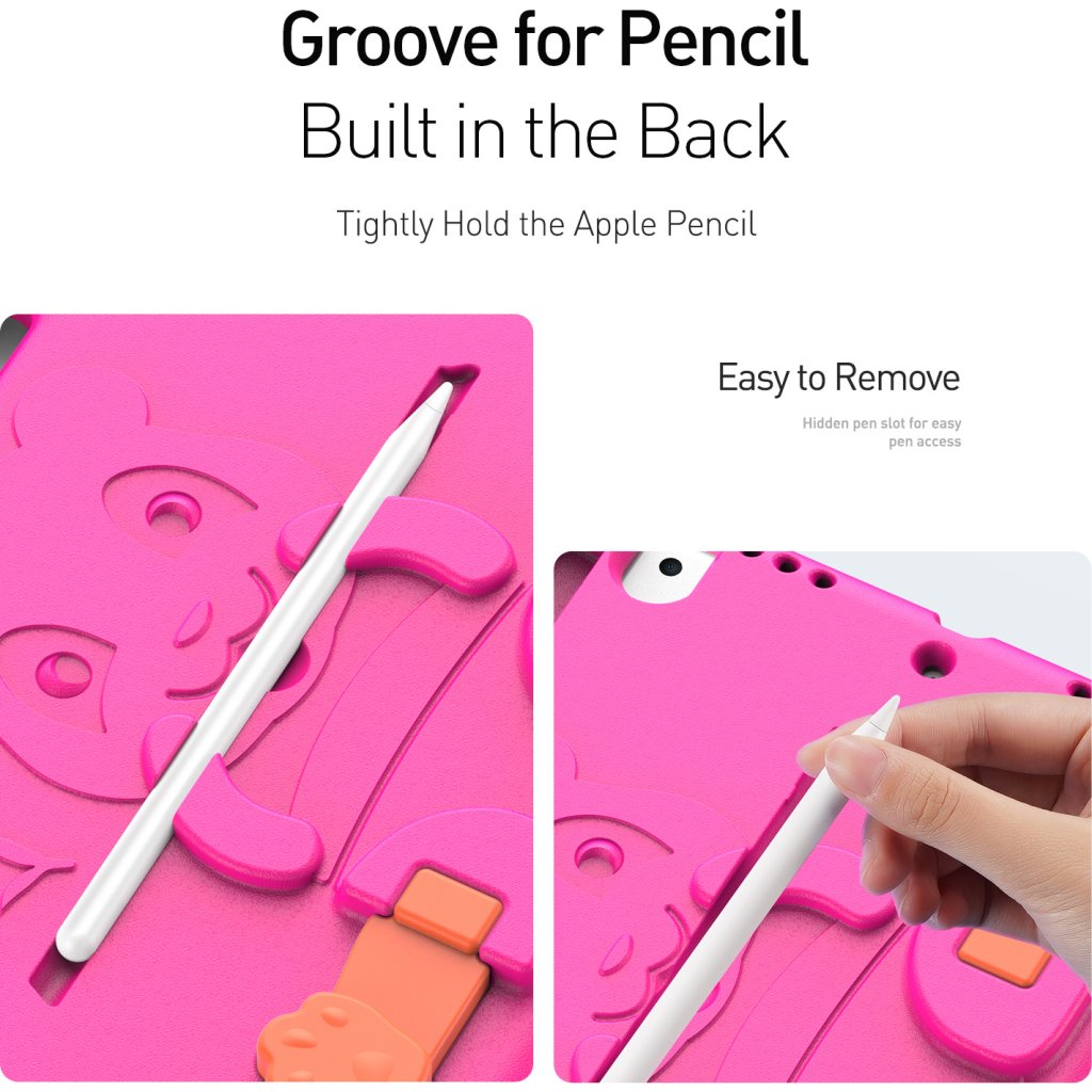Apple Pencil nebo jinou chytrou tužku děti využijí ke kreslení na tabletu. Aby ji nikde neztratily, pouzdro s pandou poskytne šikovné místo ve středu zadní části pro uchycení tužky.