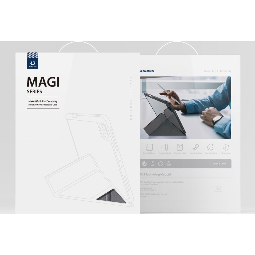 Pouzdro pro iPad DuxDucis Magi už svým názvem napovídá, že nabídne až skutečně magické funkce. Kryje zadní část i přední displej. Nabízí několik šikovných vylepšení jako je možnost stojánku nebo připevnění Apple Pencil a vypadá velmi reprezentativně.