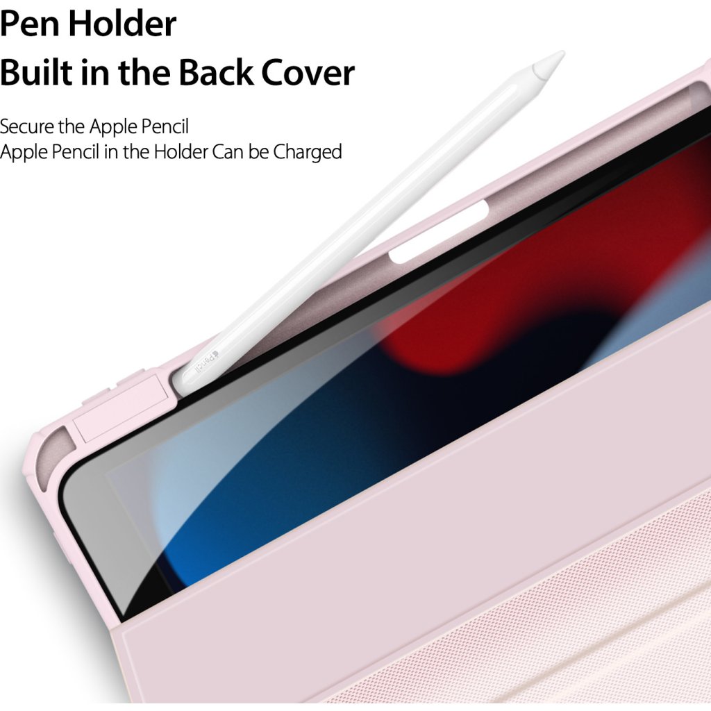 Pouzdro pro iPad Duxducis Toby zvládne zastat několik funkcí najednou. Chrání celé tělo iPadu z přední i zadní části a vyniká šikovnými vychytávkami jako jsou držák tužky Apple Pencil, inteligentní odemykání a zamykání displeje, nebo funkce stojánku.