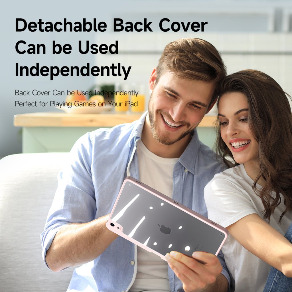 Kryt na iPad velmi rychle nasadíte a v plastovém obalu bude tablet perfektně držet. Záda jsou průhledná, takže vynikne originální design iPadu. Přední část se dá lehce skládat a při otevření se iPad automaticky rozsvítí. Zavření krytu zase displej zhasne a šetří tím energii. Navíc jde odpojit přední část a používat pouze kryt zad. Je to jen na vás.
