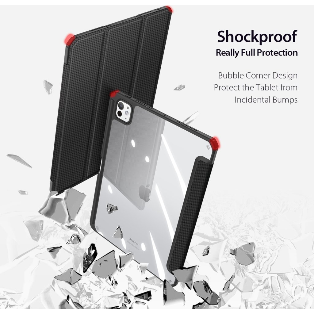 Pouzdro pro iPad Duxducis Toby zvládne zastat několik funkcí najednou. Chrání celé tělo iPadu z přední i zadní části a vyniká šikovnými vychytávkami jako jsou držák tužky Apple Pencil, inteligentní odemykání a zamykání displeje, nebo funkce stojánku.