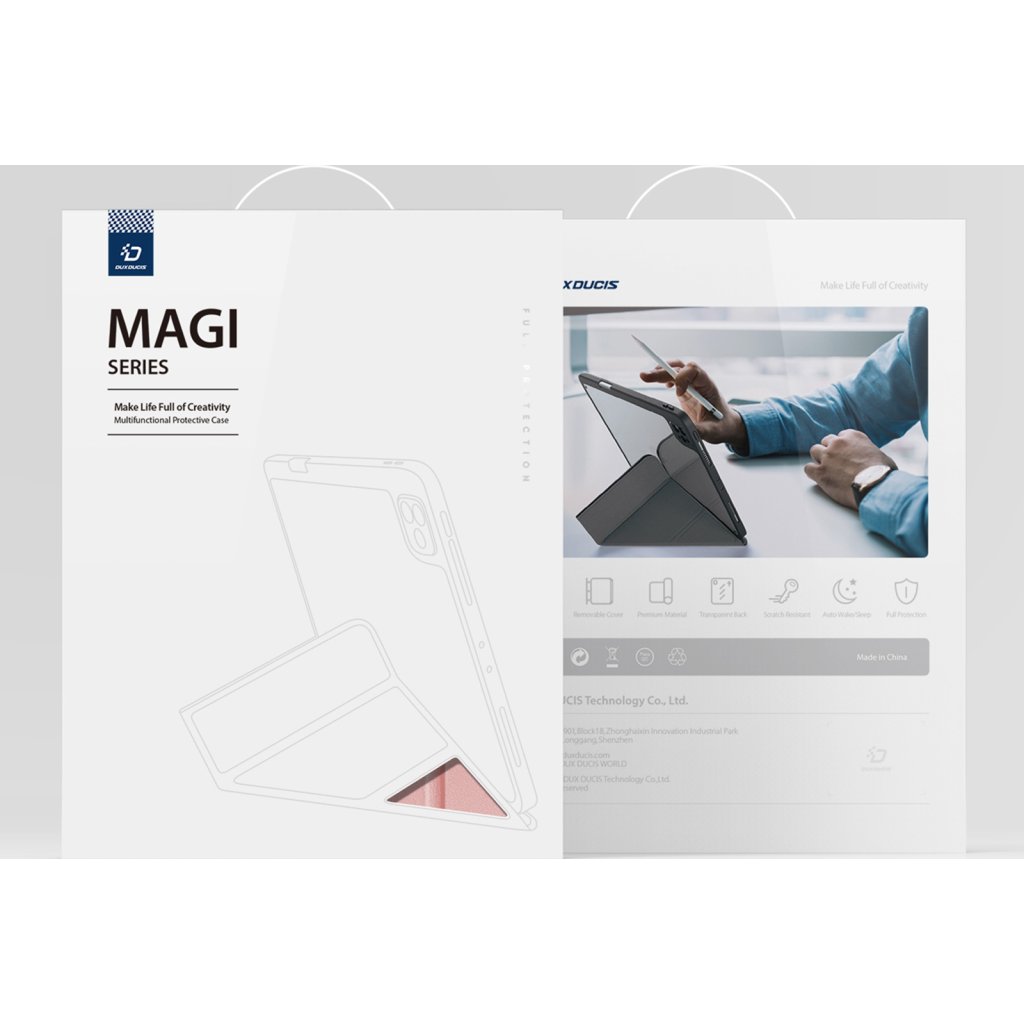 Pouzdro pro iPad DuxDucis Magi už svým názvem napovídá, že nabídne až skutečně magické funkce. Kryje zadní část i přední displej. Nabízí několik šikovných vylepšení jako je možnost stojánku nebo připevnění Apple Pencil a vypadá velmi reprezentativně.