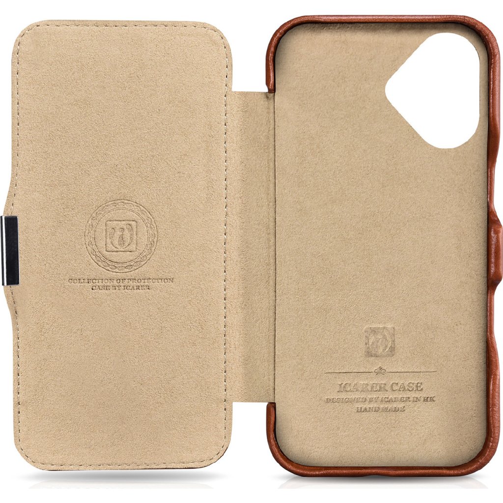 Knížkové pouzdro na iPhone 16 - iCarer, Oil Wax Real Leather MagSafe Brown