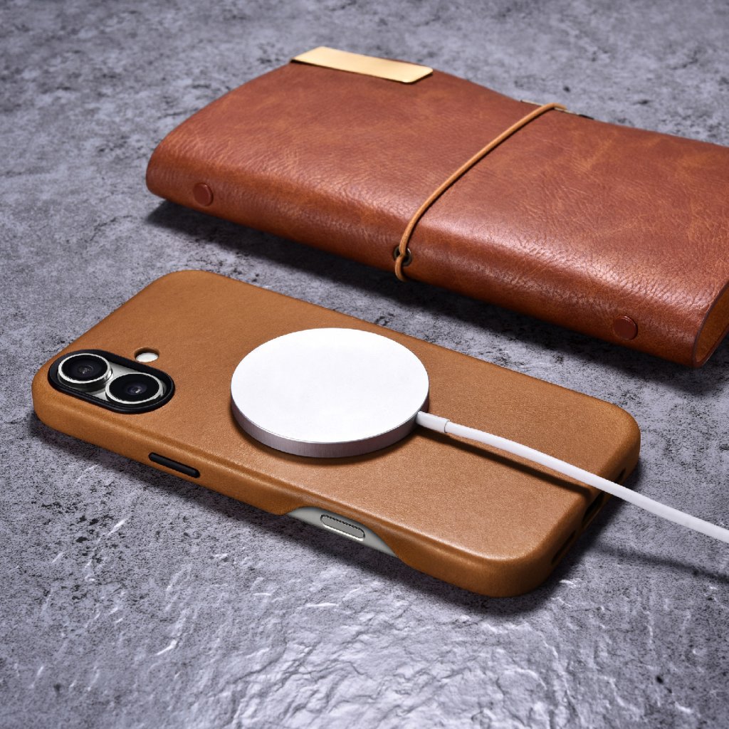 Kožený obal na iPhone 16 - iCarer, OilWax MagSafe Camel