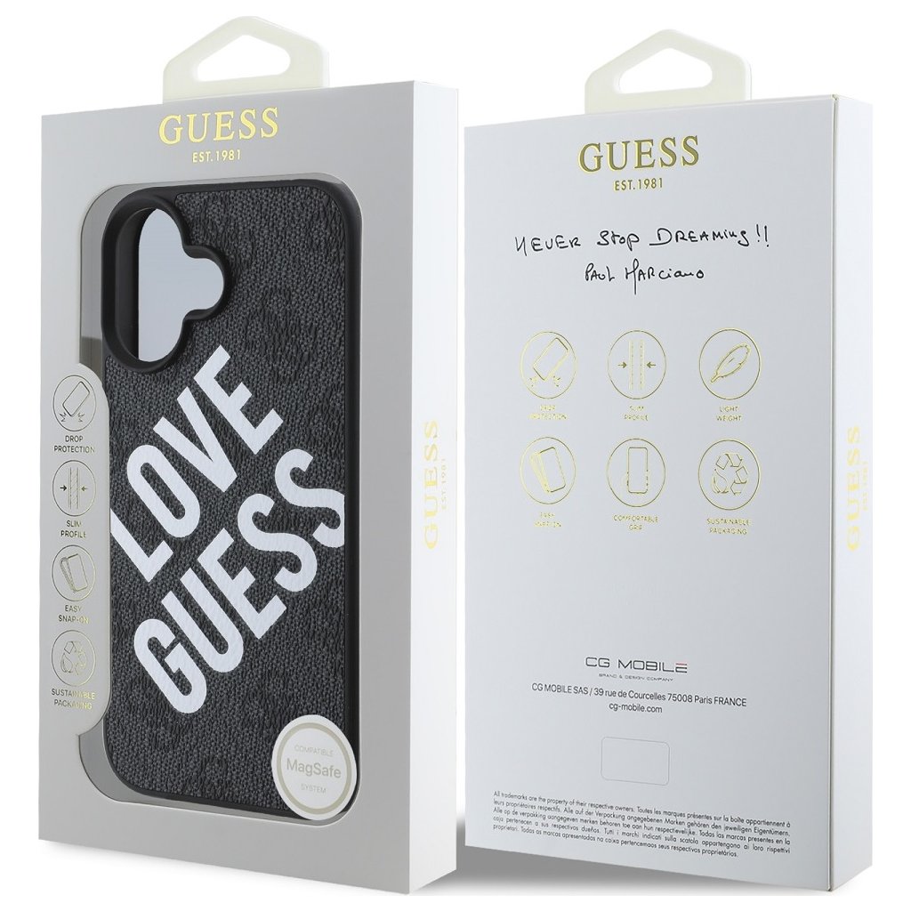 Ochranný kryt na iPhone 16 - Guess, 4G Big Love MagSafe Black