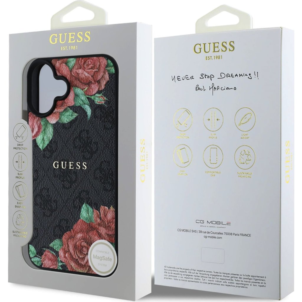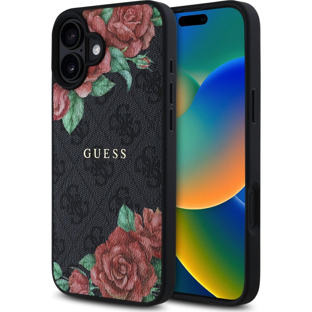 Ochranný kryt na iPhone 16 - Guess, 4G Roses MagSafe Black