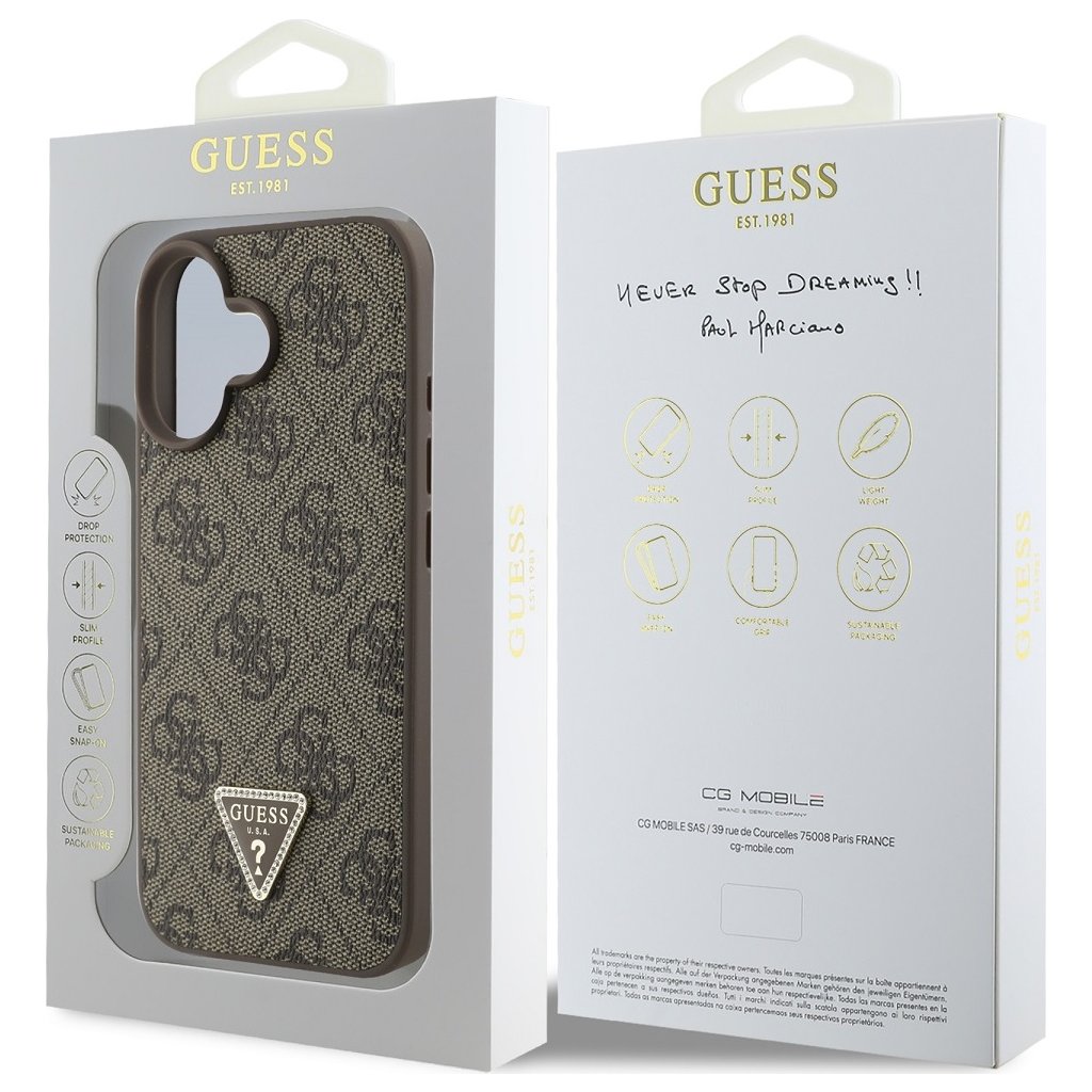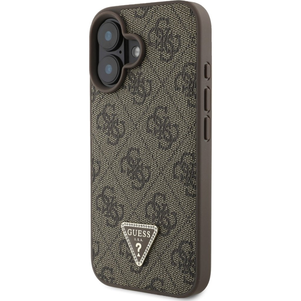 Ochranný kryt na iPhone 16 - Guess, 4G Strass Triangle Brown