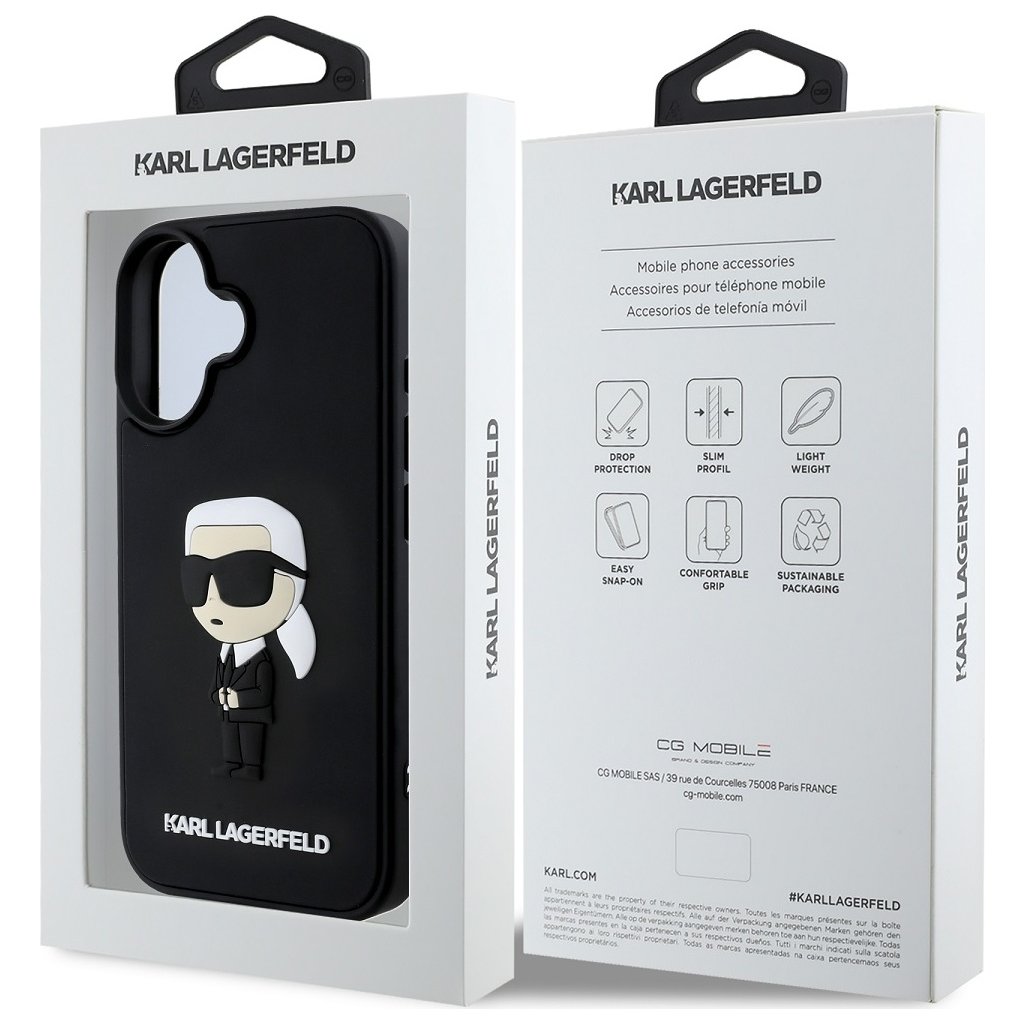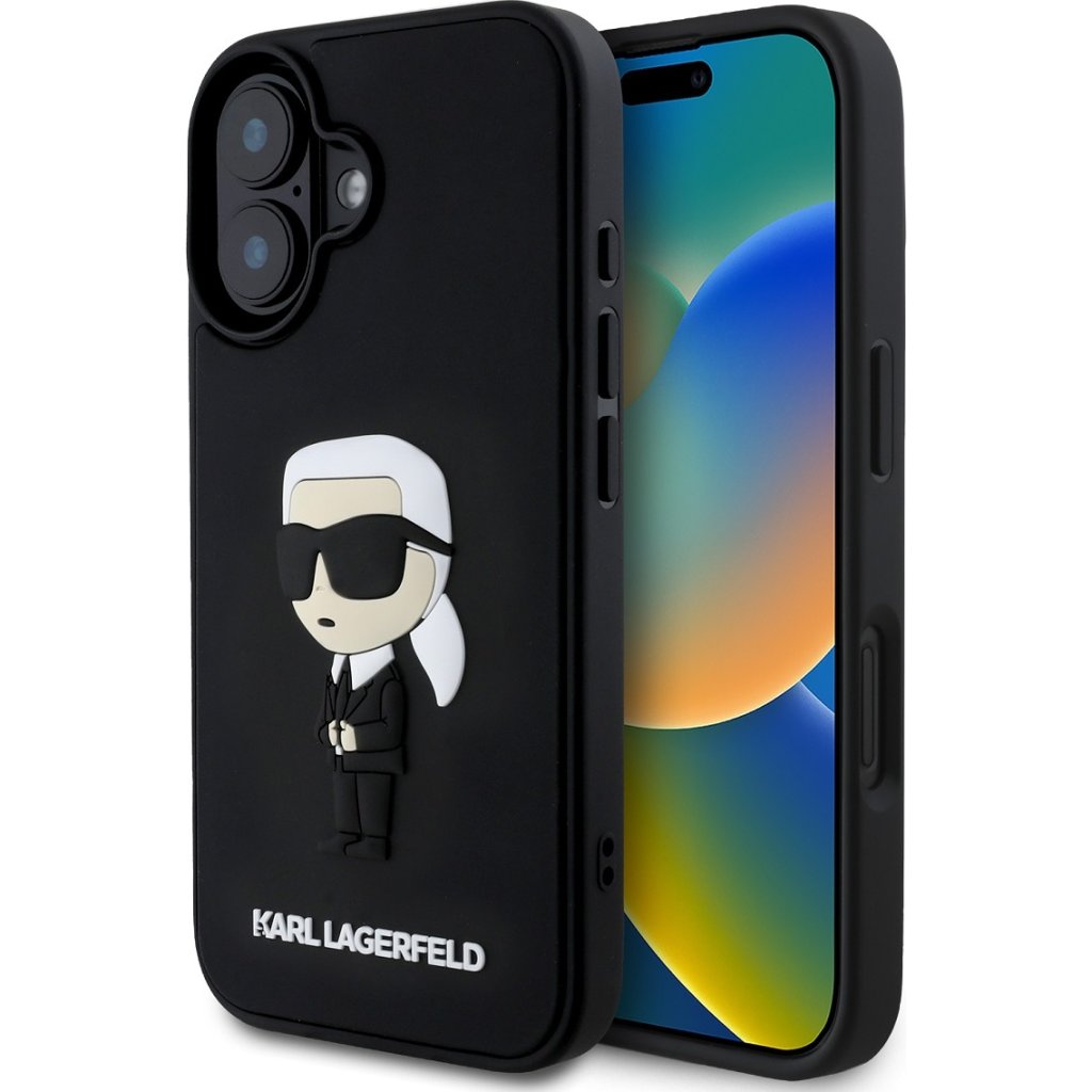 Ochranný kryt na iPhone 16 - Karl Lagerfeld, 3D Rubber Ikonik Black