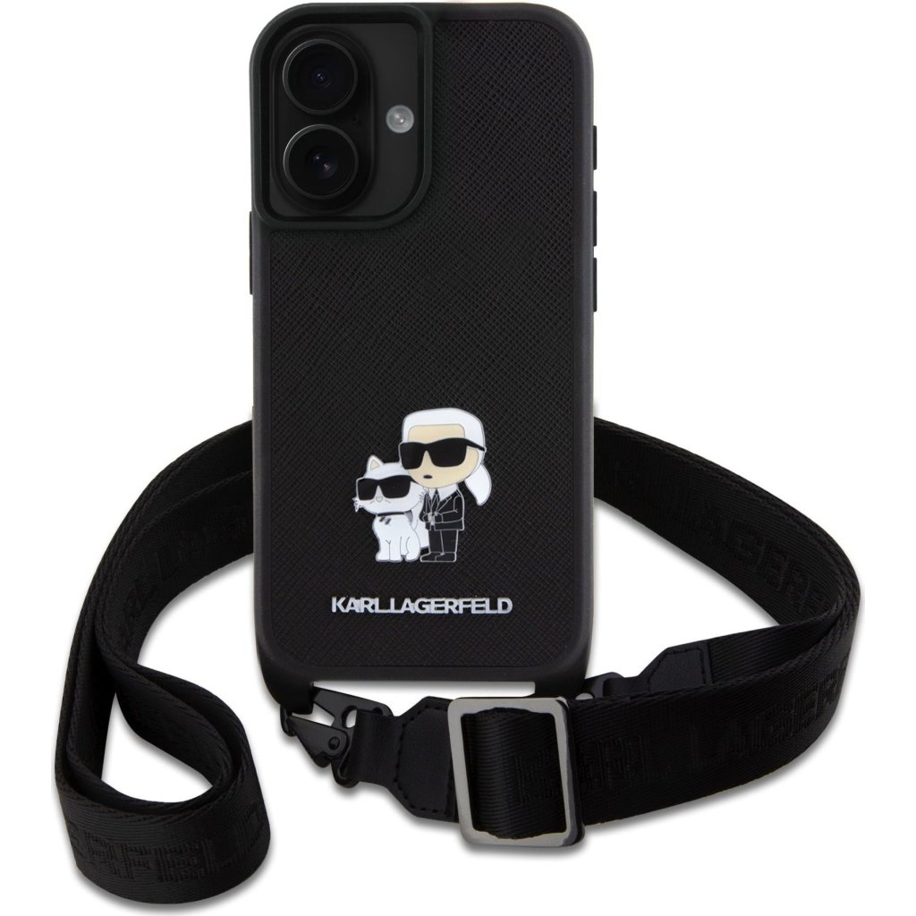 Ochranný kryt na iPhone 16 - Karl Lagerfeld, Metal Crossbody Karl and Choupette Black
