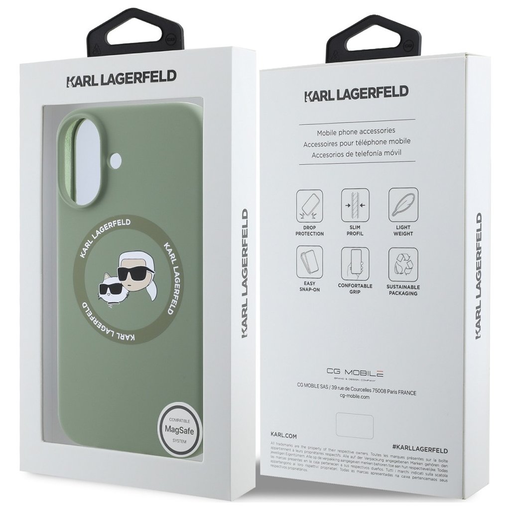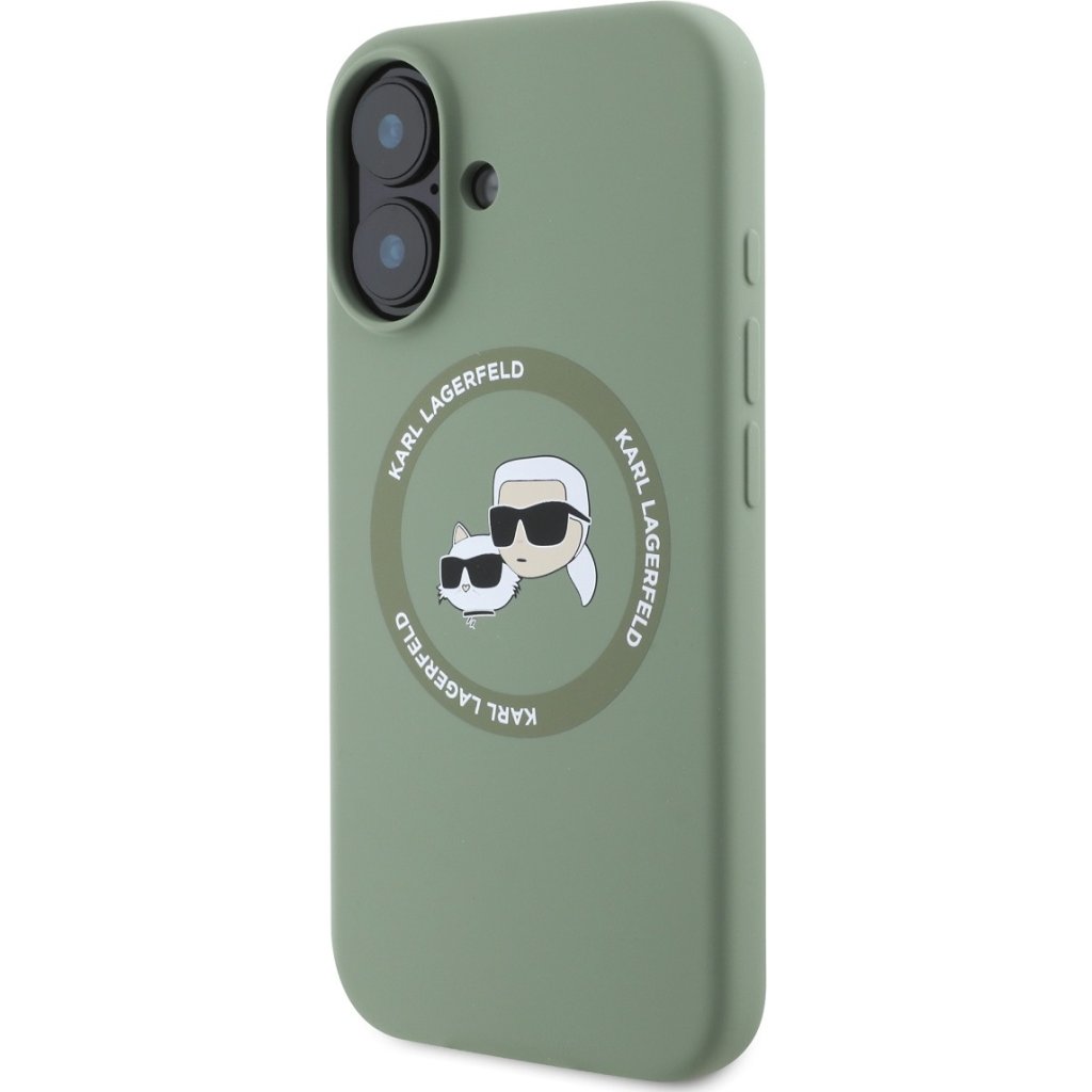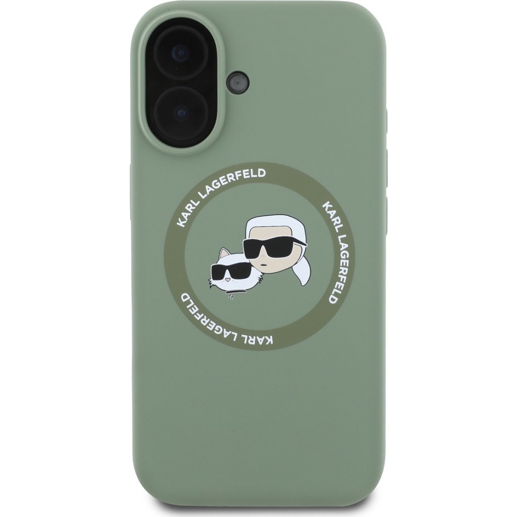 Ochranný kryt na iPhone 16 - Karl Lagerfeld, Silicone K&CH Heads MagSafe Kaki