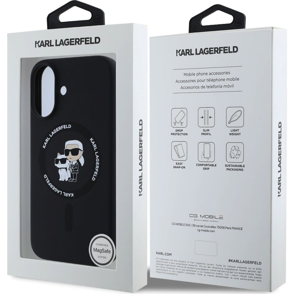 Ochranný kryt na iPhone 16 - Karl Lagerfeld, Silicone Karl and Choupette MagSafe Black