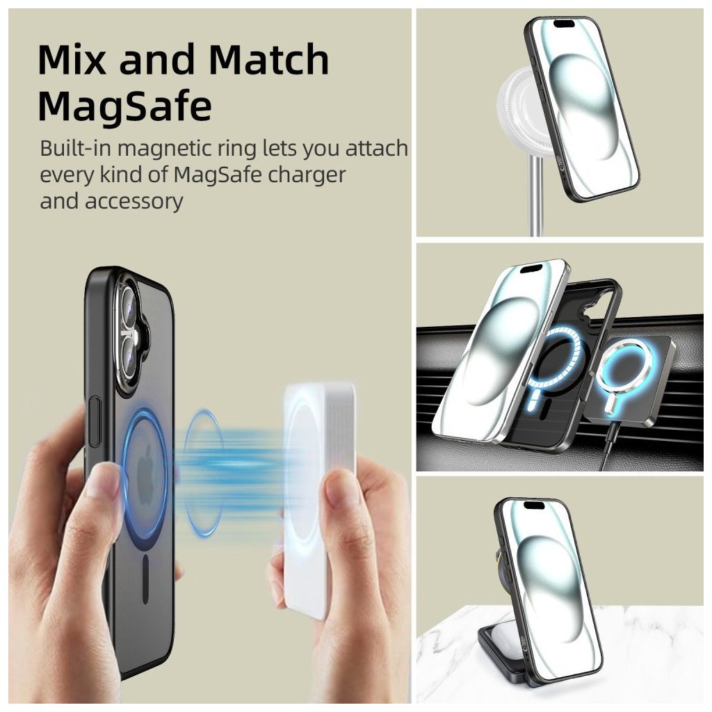 Ochranný kryt na iPhone 16 - Tech-Protect, Magedge MagSafe Matte Black