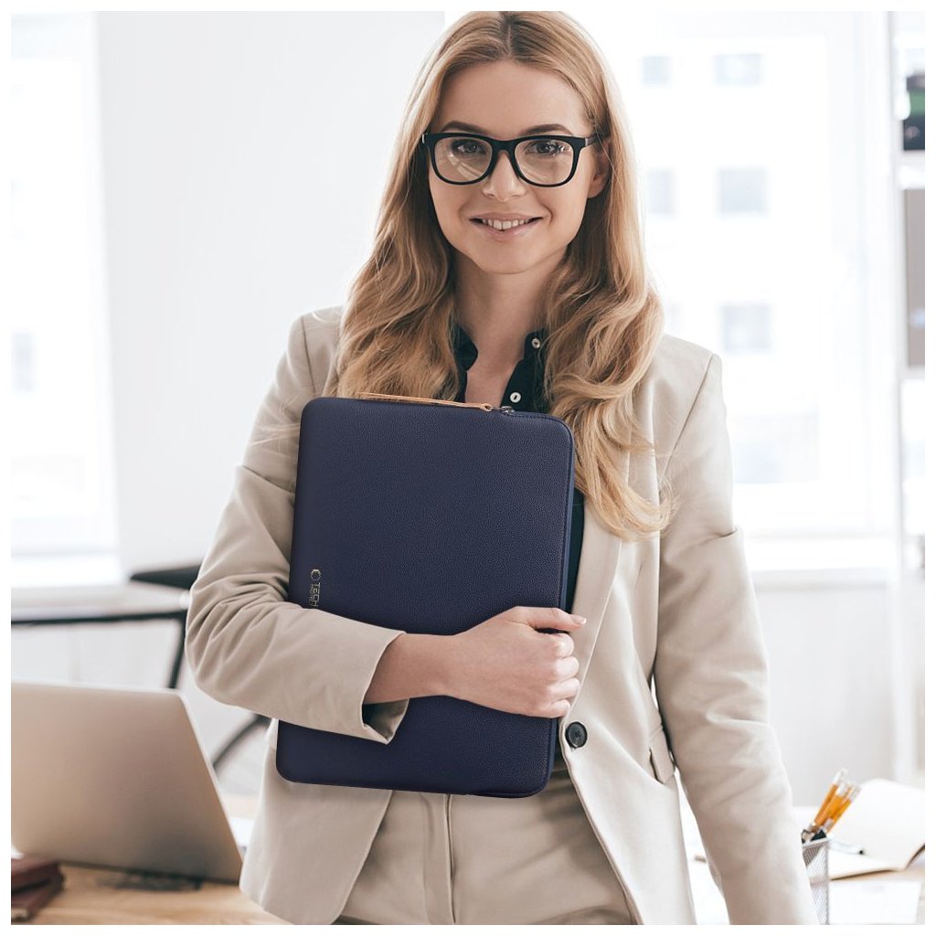 Pouzdro na notebook Tech-Protect, určené pro velikosti 13-14 palců, je vyrobeno z jemného fleece materiálu v odstínu Navy Blue, který poskytuje spolehlivou ochranu před poškrábáním a nárazy. Díky tenkému a lehkému designu je pohodlné na přenášení a zároveň vypadá stylově. Pouzdro má pevné švy a kvalitní zip, což zaručuje dlouhou životnost a bezpečí vašeho zařízení. Ideální volba pro každodenní použití, kombinující ochranu a eleganci.