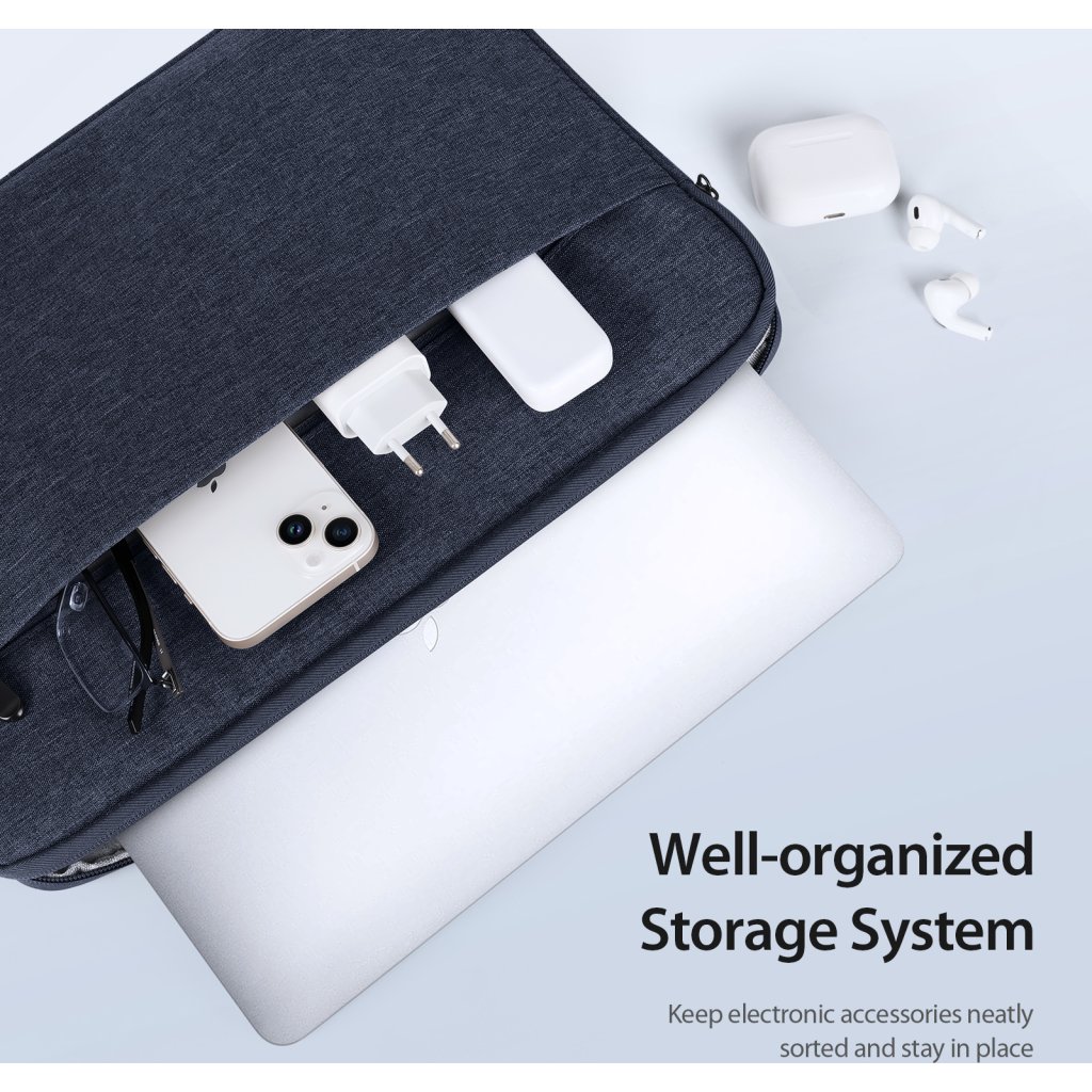 Pouzdro na notebook DuxDucis LBDB je vyrobeno z vysoce husté polyesterové tkaniny, která je odolná proti opotřebení, poškrábání a vodě. Díky polstrované vrstvě z perlové bavlny a vnitřní podšívce z měkkého sametového mikrovlákna poskytuje vašemu notebooku komplexní ochranu. Spolehlivě zvládne každodenní nárazy a otřesy, takže se nemusíte obávat, že by došlo k poškození vašeho zařízení.