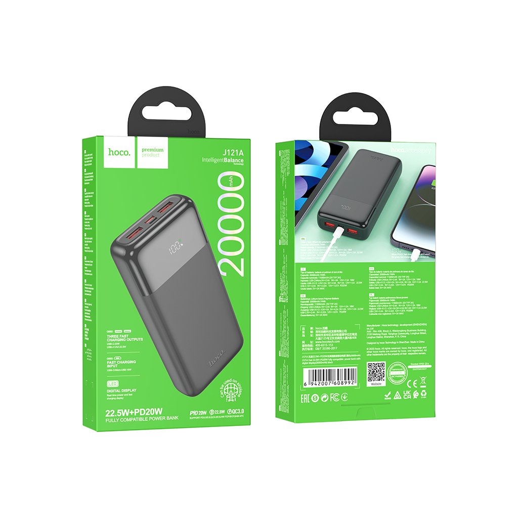 Externí baterie / powerbanka - Hoco, J121A Fast 22.5W+PD20W 20000mAh Black