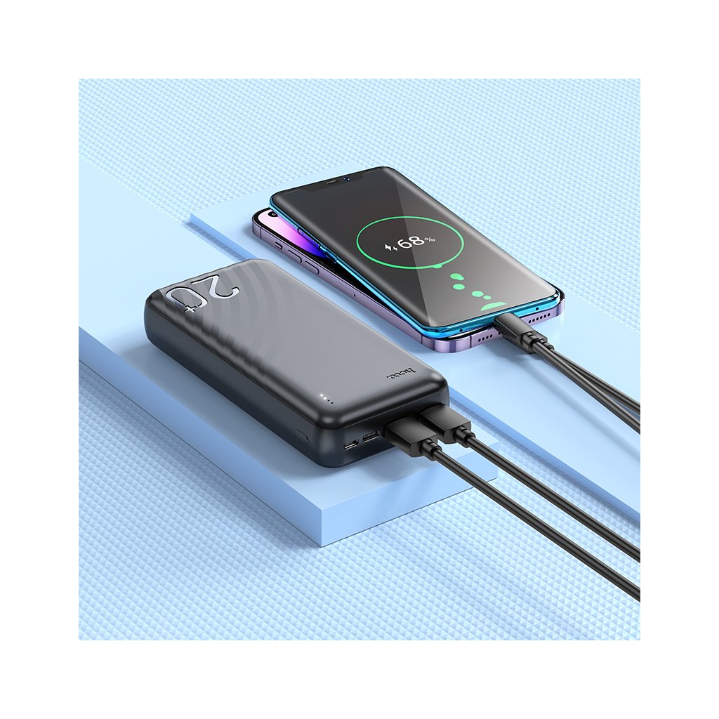Externí baterie Hoco J123A je pořádně nabušená powerbanka. Přes svoje kompaktní rozměry nabídne kapacitu 20 000 mAh, takže budete moct vícekrát nabít svůj telefon nebo tablet na cestách. Nabíjet můžete dvě zařízení současně a zbývající energii uvidíte přehledně pomocí bílých LED diod.