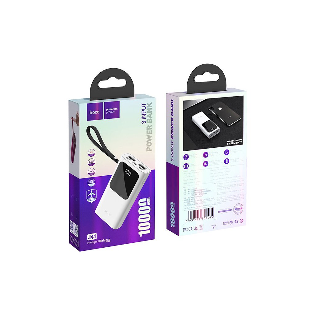 Externí baterie Hoco J41 Treasure se stane opravdovým pokladem, když vám dojde energie. Kapacita 10 000 mAh plně dostačuje na několikanásobné dobití telefonu a je i zajímavým stylovým doplňkem. Nabíjet lze až dvě zařízení najednou a oceníte, že dobít můžete powerbanku i s Lightning kabelem. Powerbanka pro iPhone Hoco J41 je zajímavě zpracovaná externí baterie. Na svém těle má praktické kožené poutko, které poslouží k praktickému i designovému účelu. Plášť powerbanky je obdařen tvrdým ABS plastem a látkami, které zpomalují hoření. Příslušenství váží něco málo přes 200 gramů, takže ho můžete nosit všude s sebou.