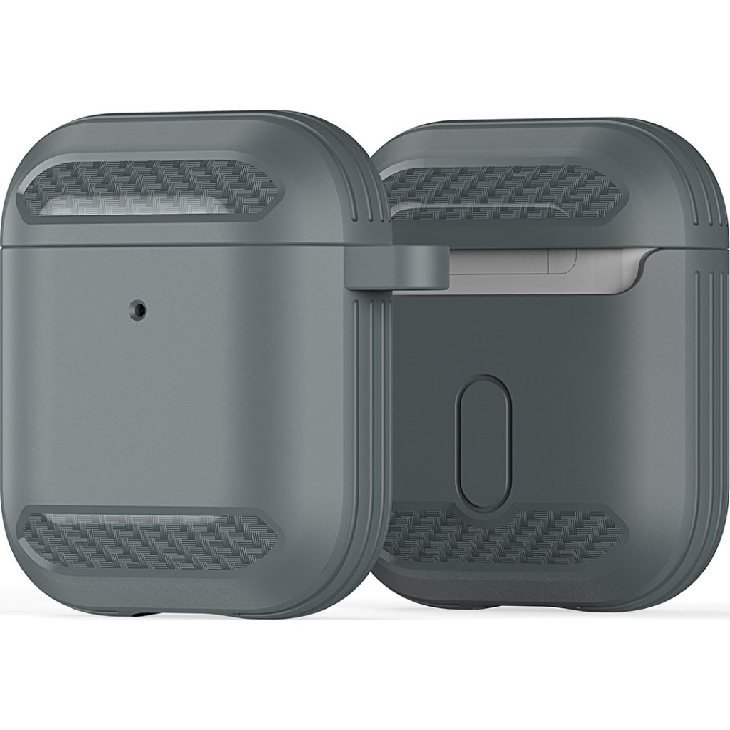 Kryt pro sluchátka AirPods udrží nabíjecí krabičku v dokonalé kondici. Je vyroben z TPU, což je odolný materiál, který odolává potu a otiskům prstů a je příjemný na dotek. K tomu dopomáhá i karbonové šrafování po stranách krytu.
