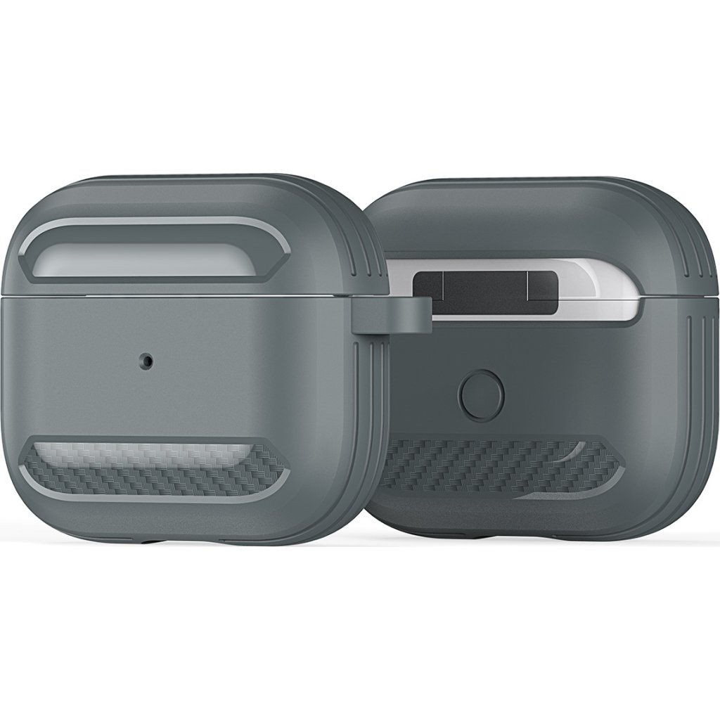 Kryt pro sluchátka AirPods udrží nabíjecí krabičku v dokonalé kondici. Je vyroben z TPU, což je odolný materiál, který odolává potu a otiskům prstů a je příjemný na dotek. K tomu dopomáhá i karbonové šrafování po stranách krytu.