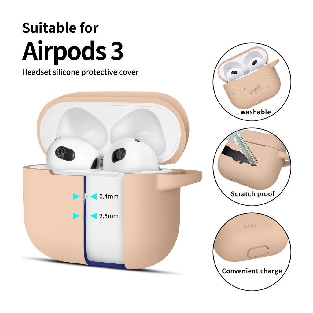Pouzdro s karabinou na sluchátka AirPods 3 - Tech-Protect, Silicone Hook Caffe Latte