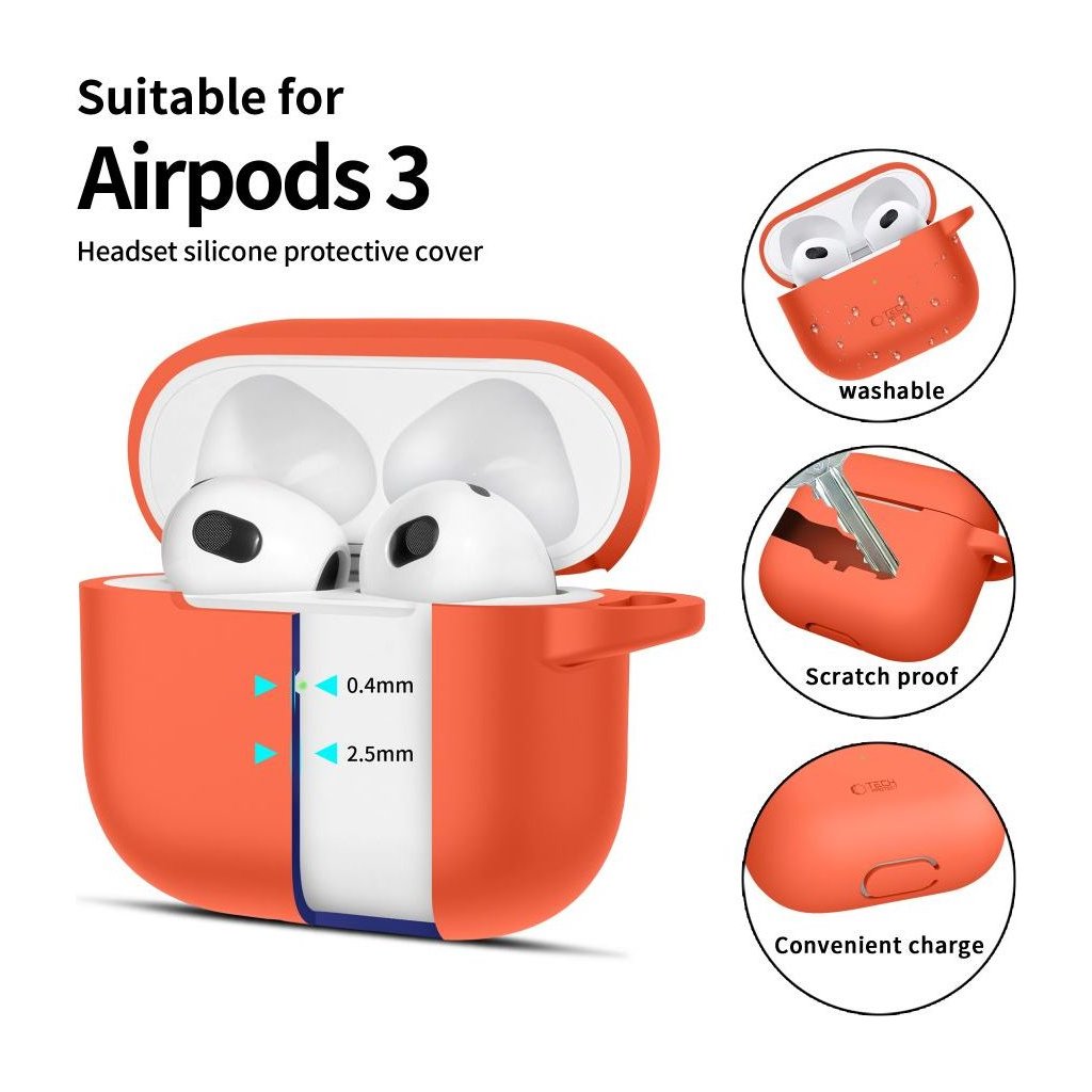 Pouzdro s karabinou na sluchátka AirPods 3 - Tech-Protect, Silicone Hook Neon Orange