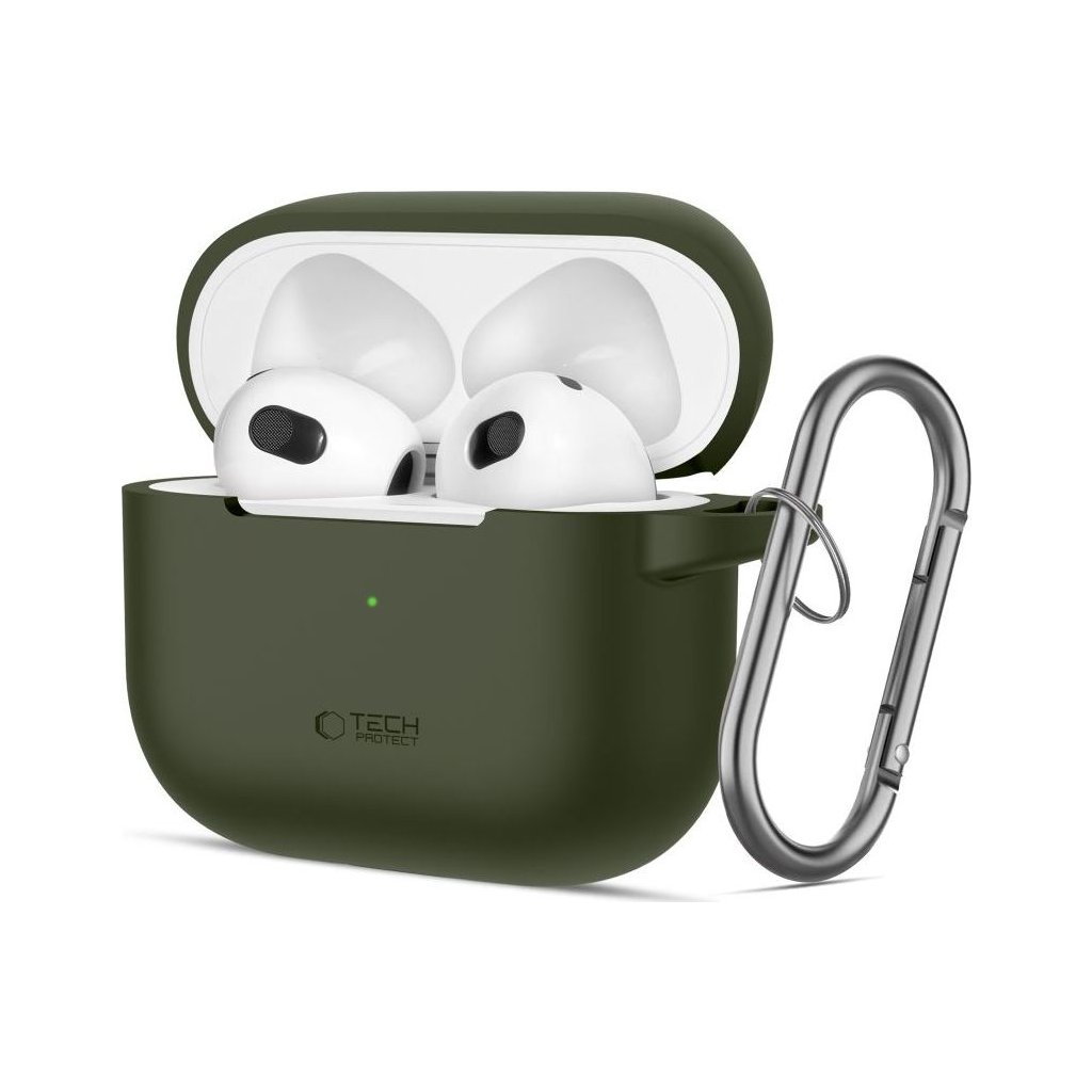 Pouzdro s karabinou na sluchátka AirPods 3 - Tech-Protect, Silicone Hook Olive Green