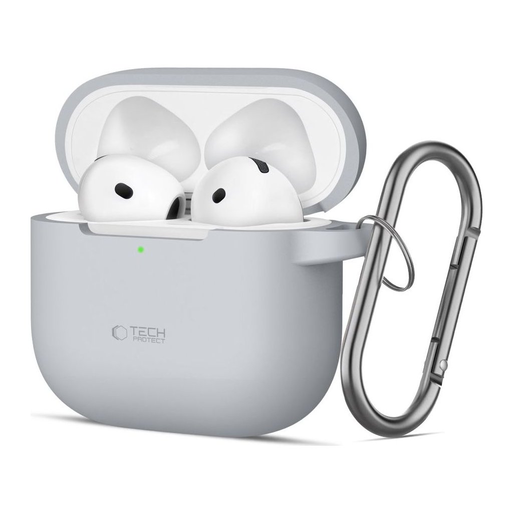 Pouzdro s karabinou na sluchátka AirPods 4 - Tech-Protect, Silicone Hook Crayon Gray