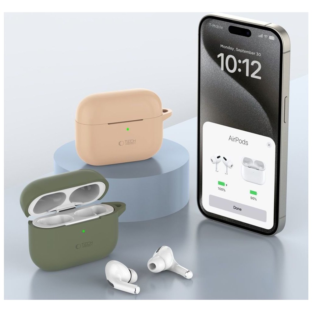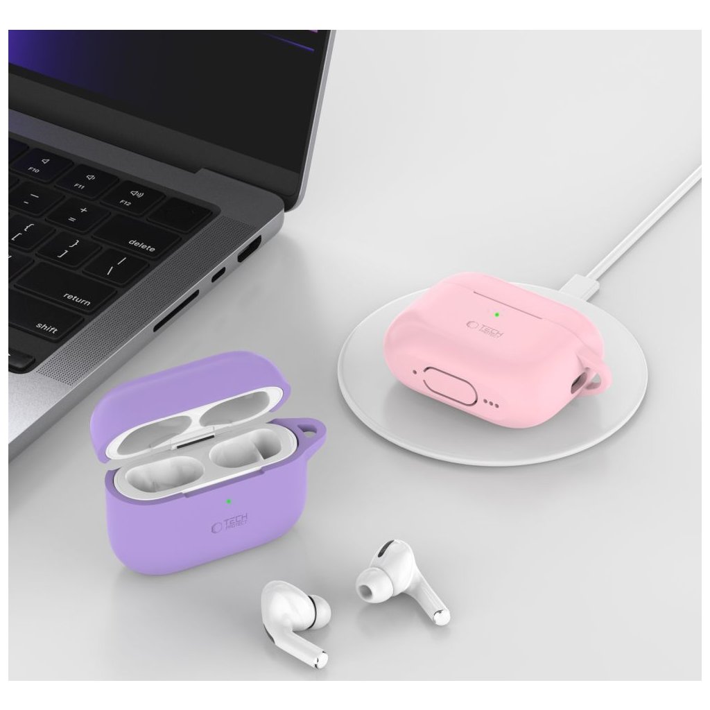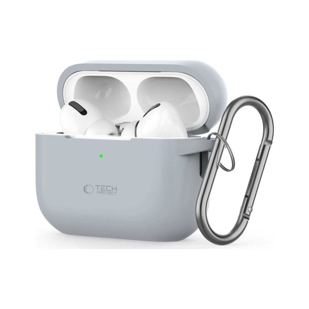 Pouzdro s karabinou na sluchátka AirPods Pro 1/2 - Tech-Protect, Silicone Hook Crayon Gray