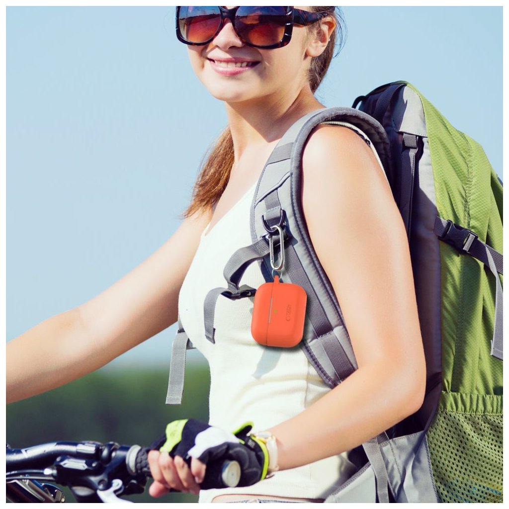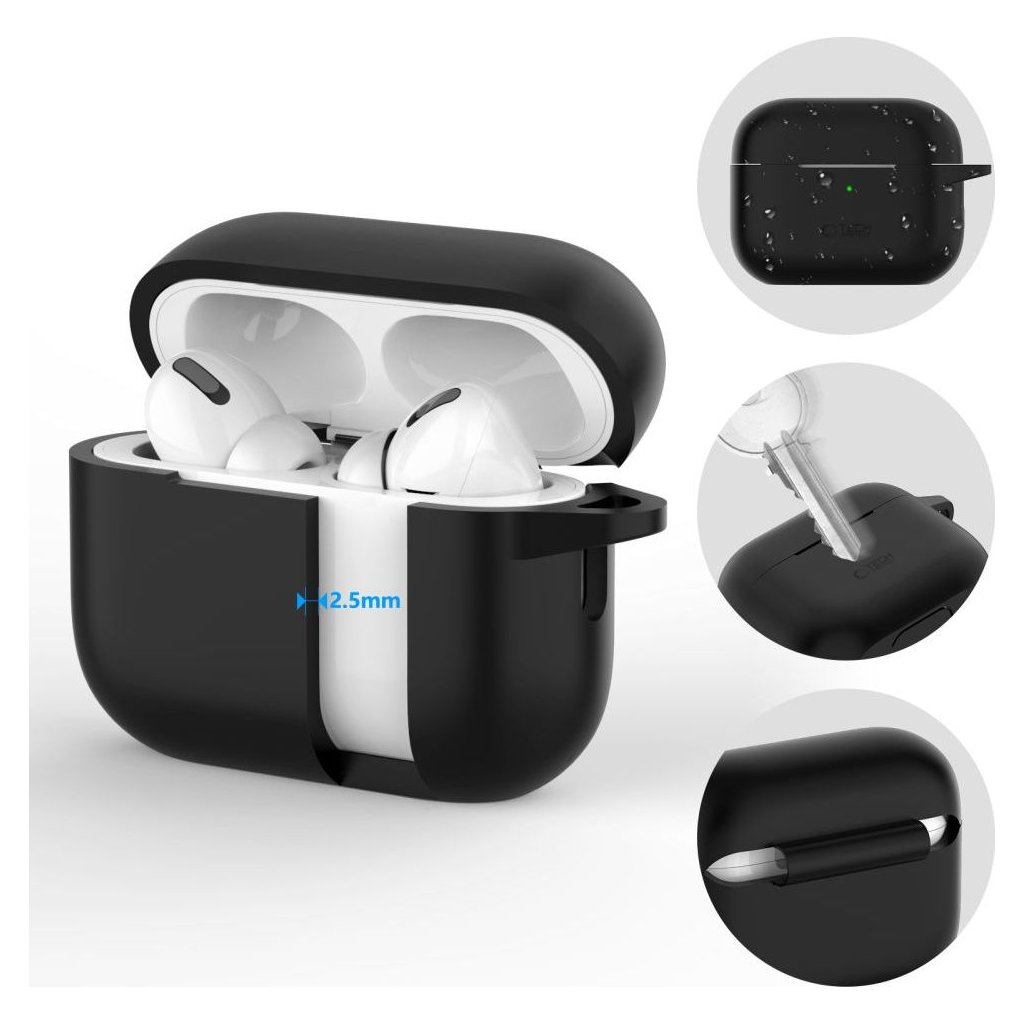 Pouzdro na sluchátka AirPods Pro s karabinou je vyrobeno z tenké gumy a výborně ochrání nabíjecí krabičku před poškrábáním a zničením. Sedí přesně na AirPods Pro a i v nasazeném krytu můžete využívat funkci bezdrátového nabíjení.