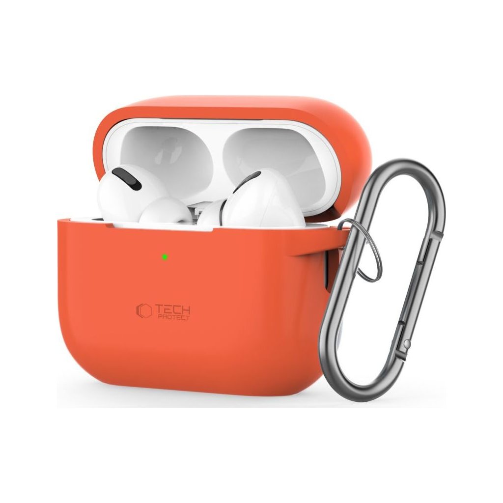 Pouzdro s karabinou na sluchátka AirPods Pro 1/2 - Tech-Protect, Silicone Hook Neon Orange