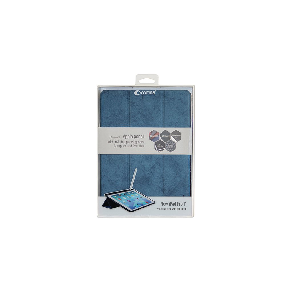 Pouzdro / kryt pro iPad Pro 11 (2018) - Comma, Leather Case Blue (Pencil Slot)
