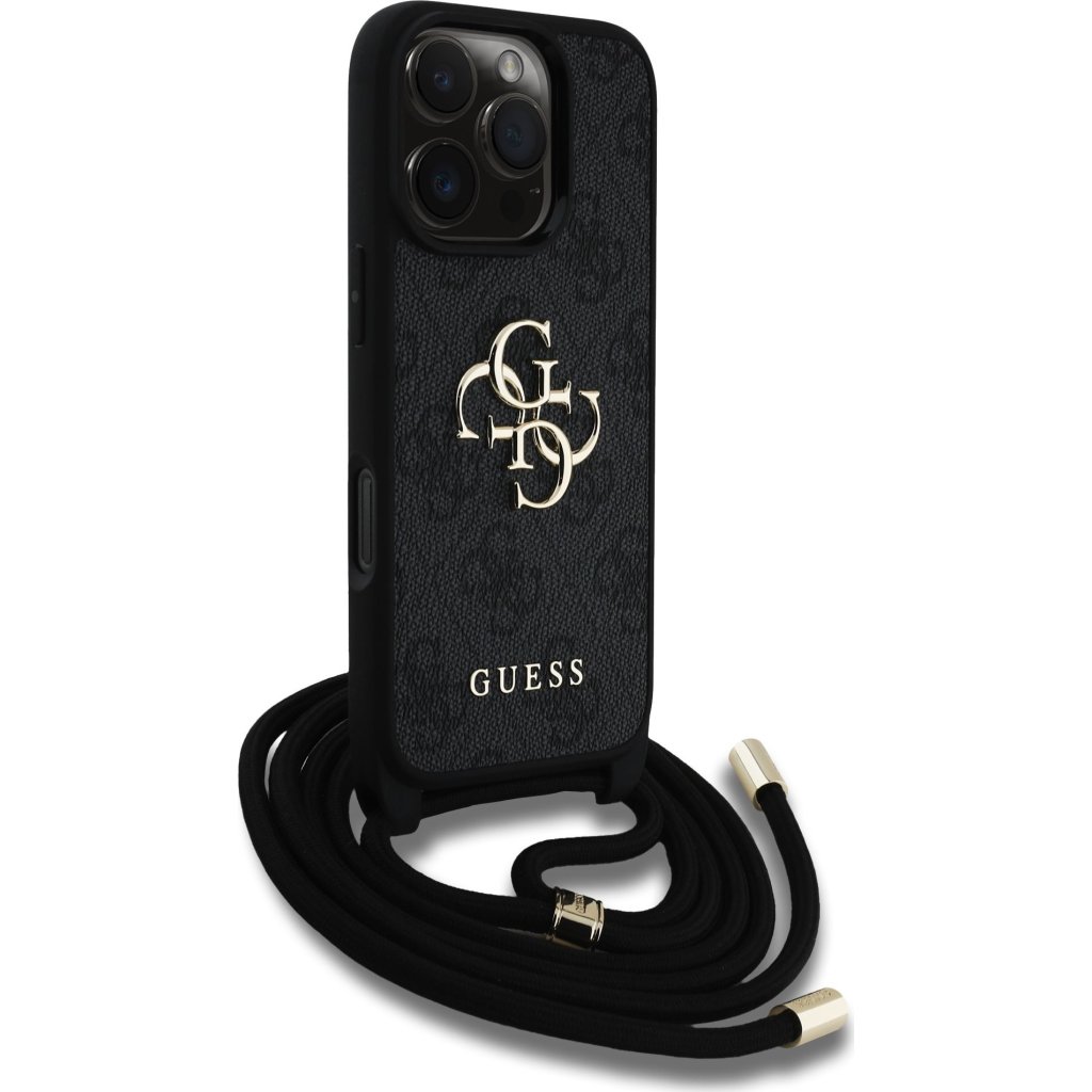 Ochranný kryt s crossbody popruhem na iPhone 16 Pro MAX - Guess, 4G PU Metal Logo Black