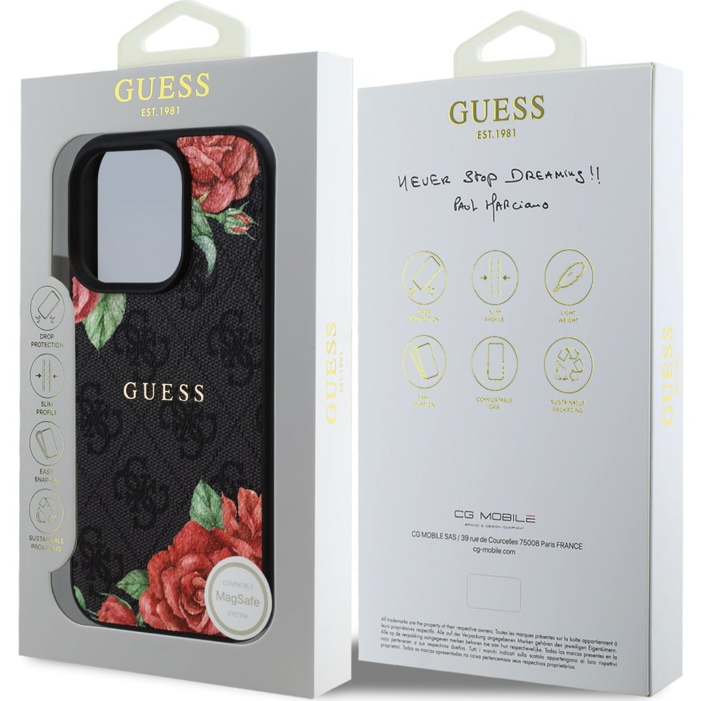 Ochranný kryt na iPhone 16 Pro - Guess, 4G Roses MagSafe Black