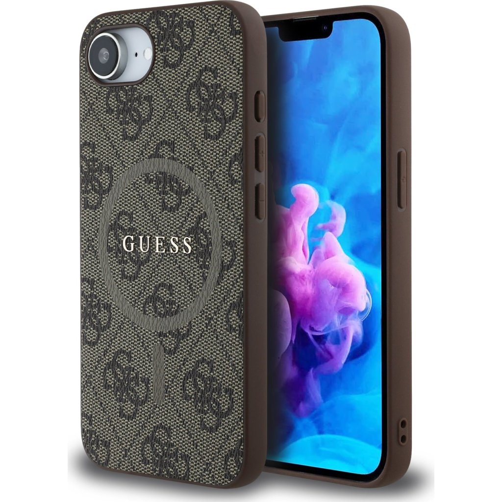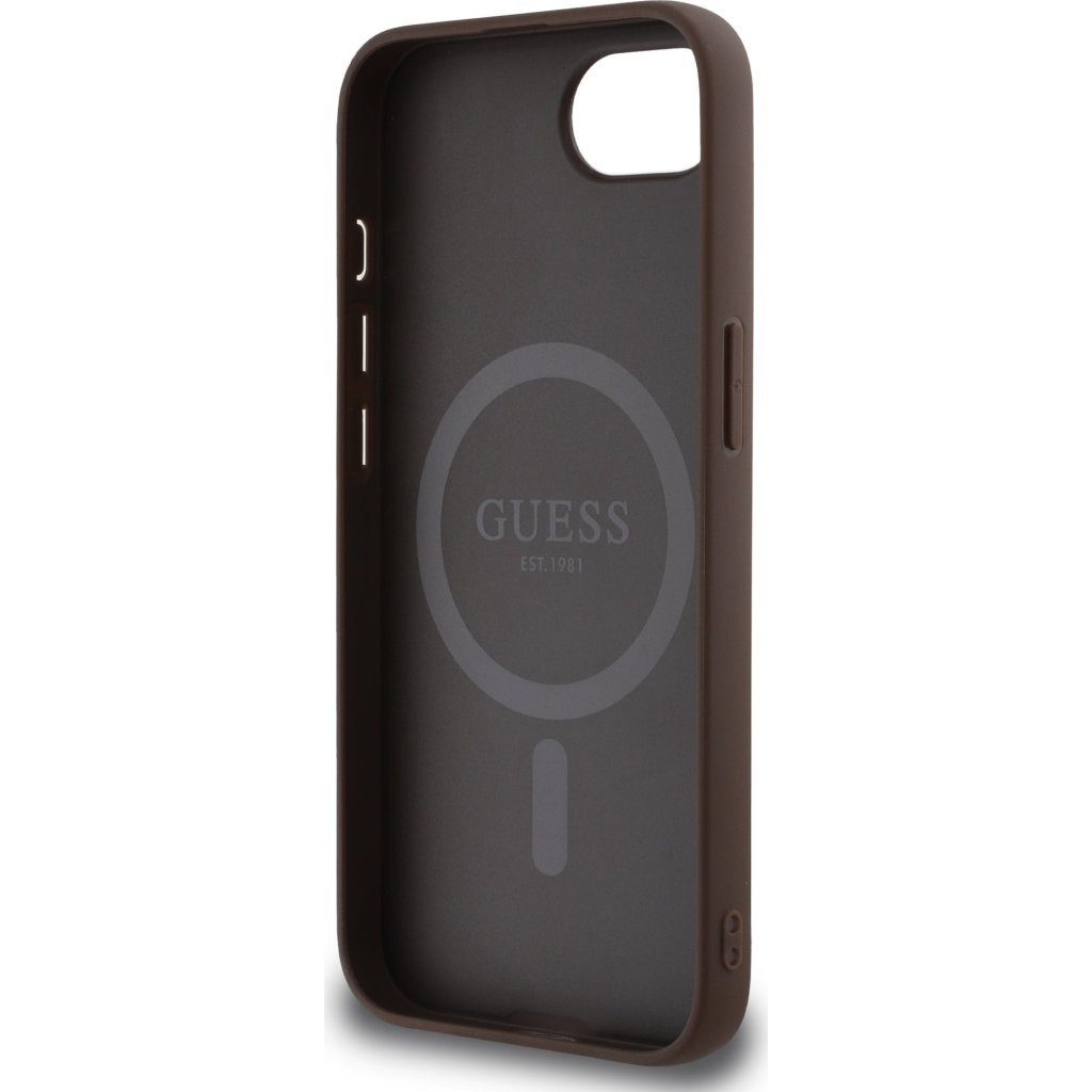 Ochranný kryt na iPhone 16e - Guess, 4G Colored Ring MagSafe Brown