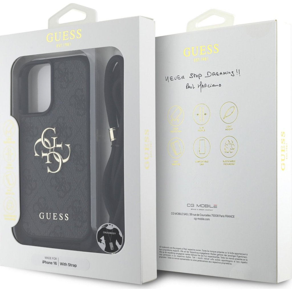 S prémiovým krytem Guess PU 4G Metal Logo získáte nejen elegantní ochranu pro váš telefon, ale také praktický crossbody popruh.