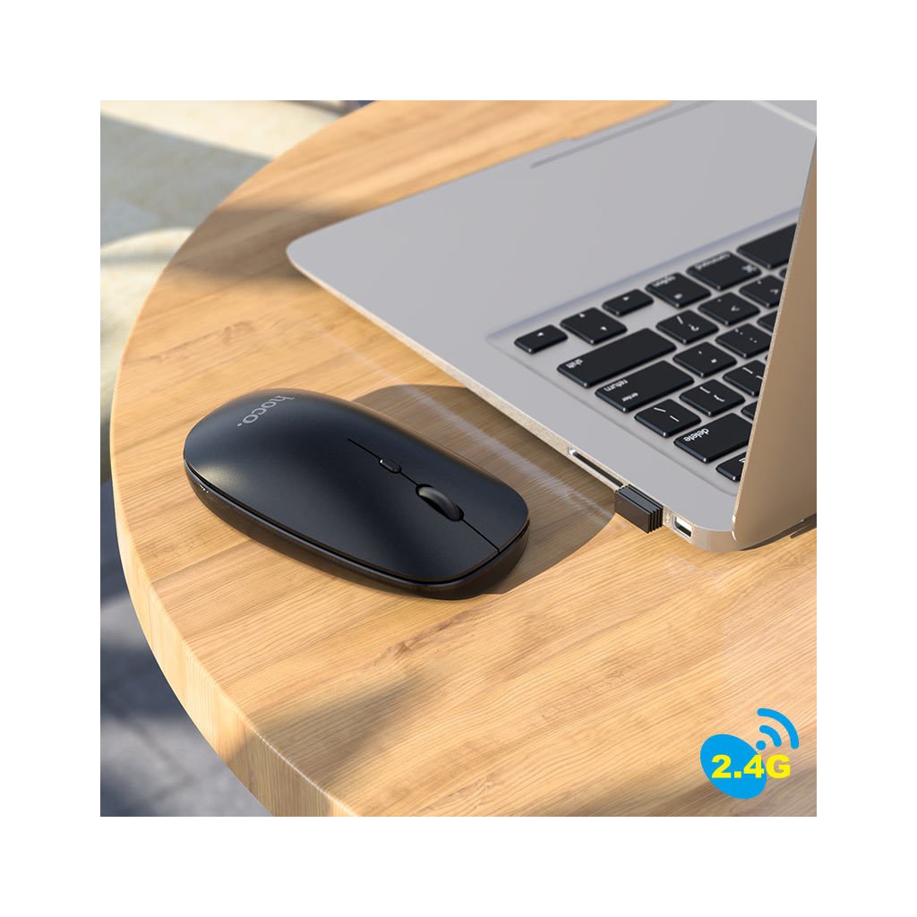 Bezdrátová myš Hoco GM15 je levným a praktickým doplňkem k vašemu počítači. Napájení je zajištěno jednou AA baterií a uvnitř se nachází přijímač signálu, který zapojíte do USB počítače. Druhou možností připojení je Bluetooth, které využijete například u Maců. Nízká váha, odolný ABS plast a DPI až 1600 jsou dalšími výhodami, které oceníte.